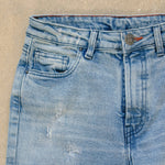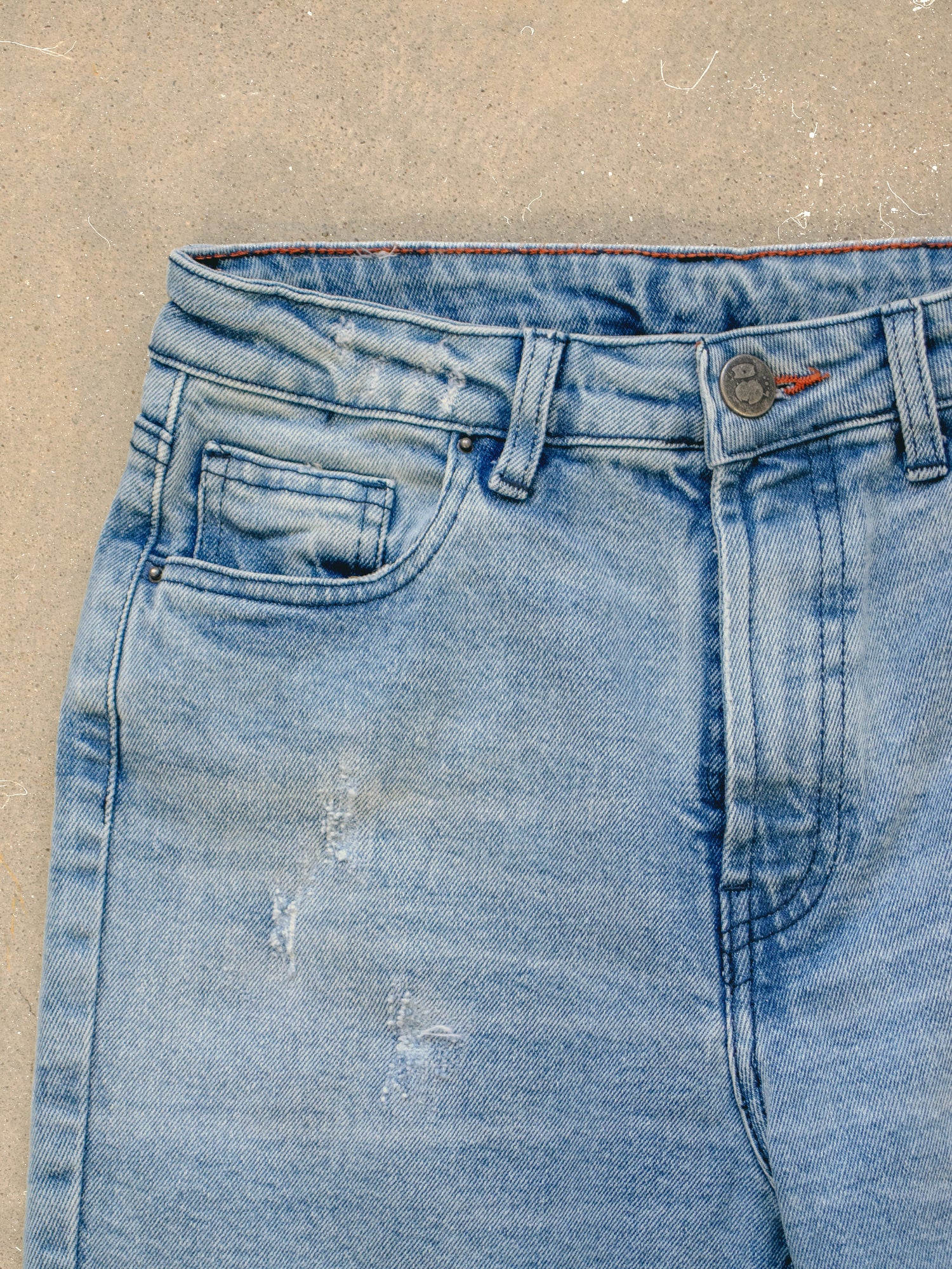 These jeans are reminiscent of 90s styles. Versatile jeans that cannot be missing in your wardrobe. It has worn details and a ripped hem to give it a more rugged touch. Limited units.