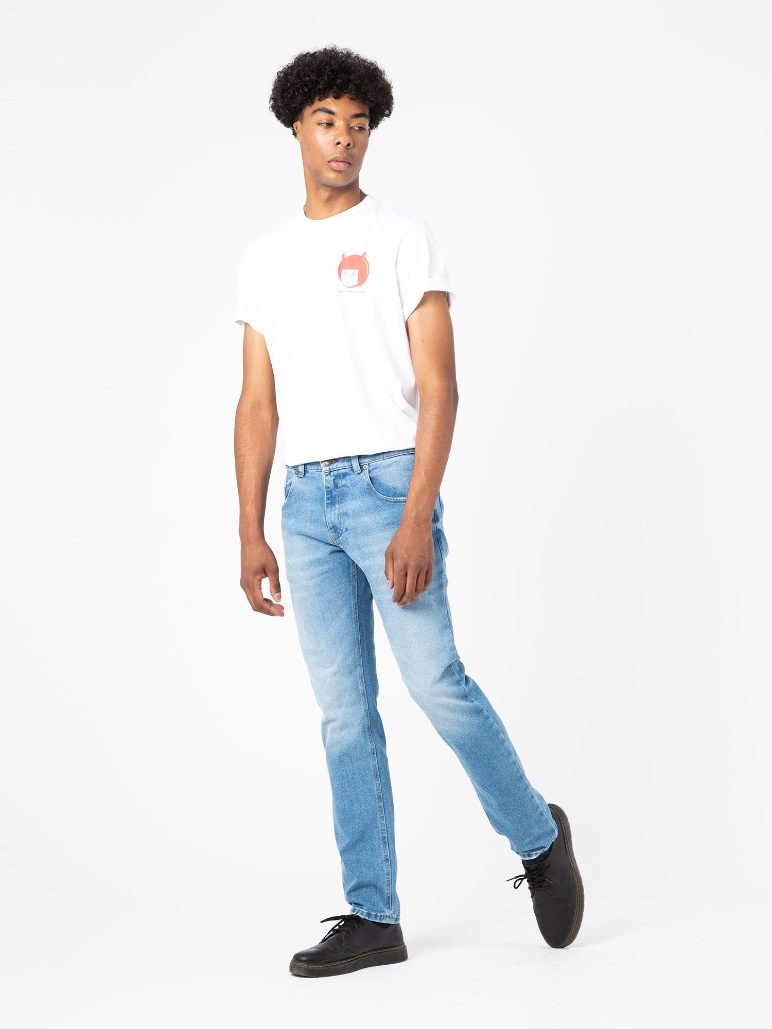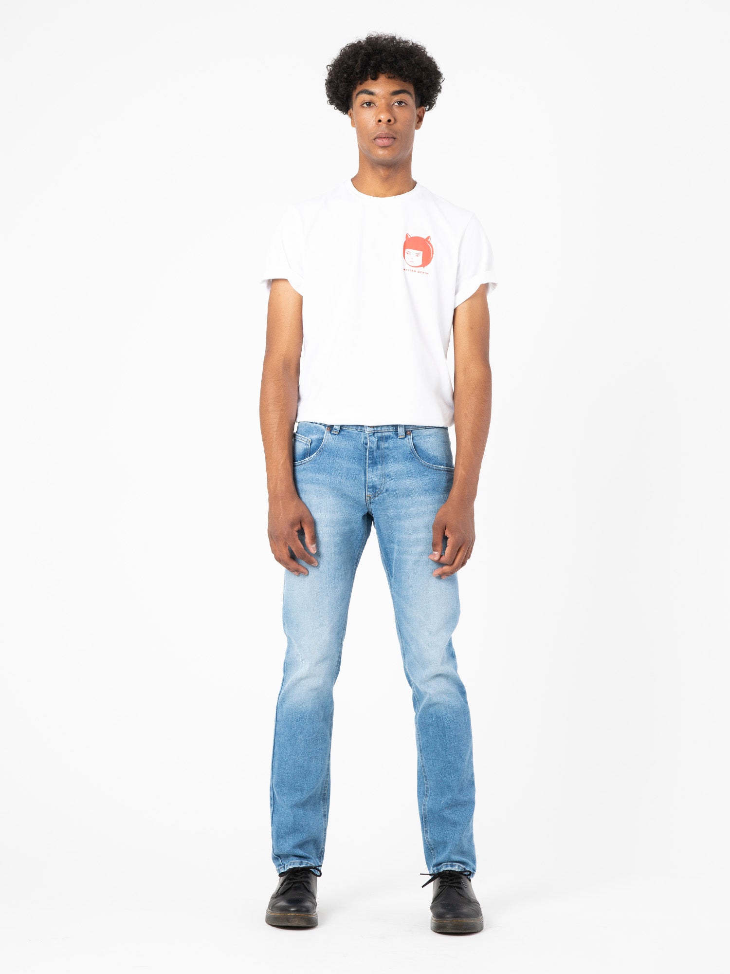 Flamingo Light Blue are men's jeans made from organic cotton. They're mid-rise, slim, or semi-skinny, and have a natural finish that allows them to be combined with any look. They also contain 1% elastane to make them even more comfortable.