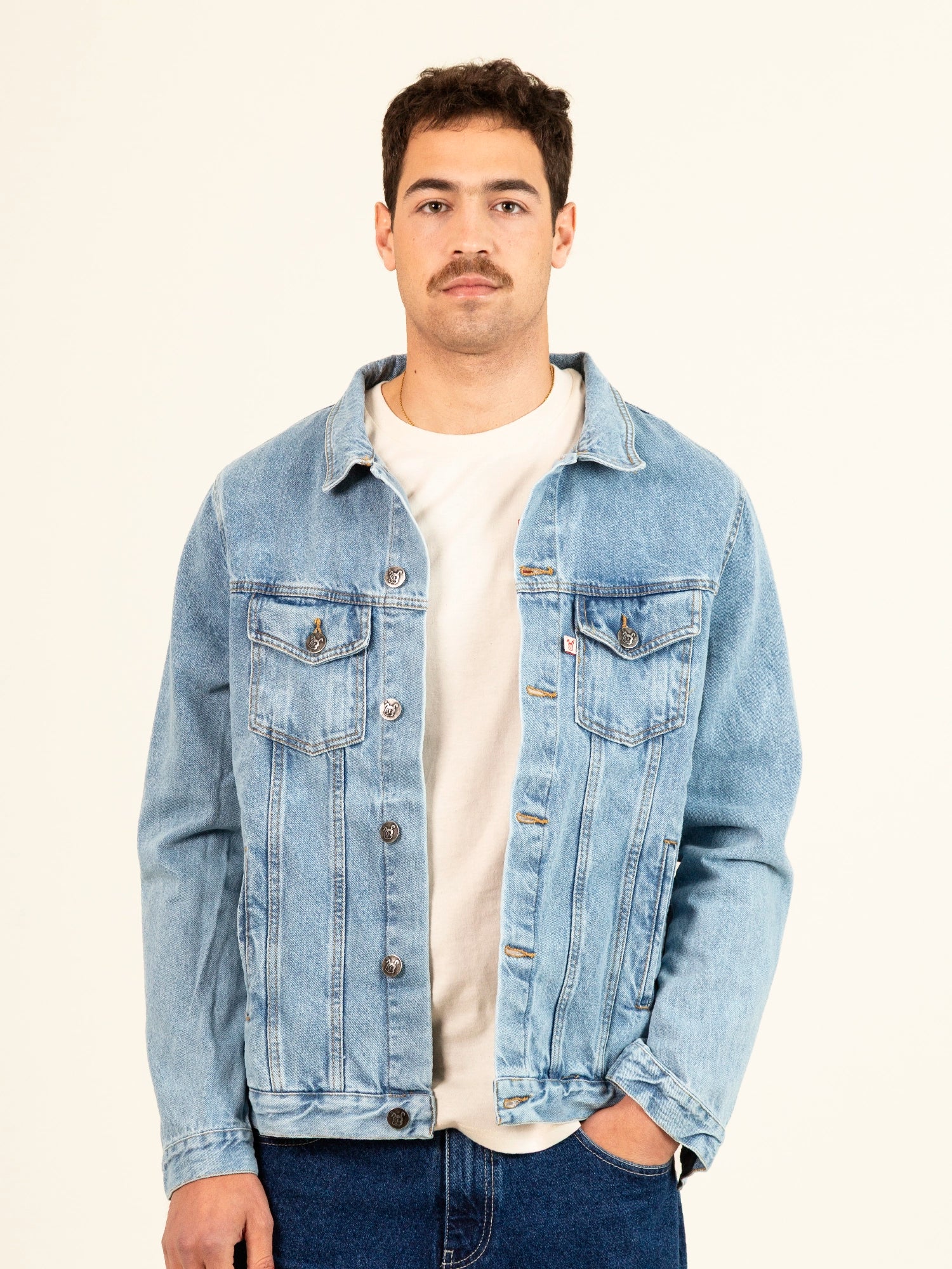 The Gino Light Blue denim jacket has a slim fit , making it a comfortable and stylish piece for any occasion. Made from 100% cotton , it's durable and sustainable, making it a perfect choice.