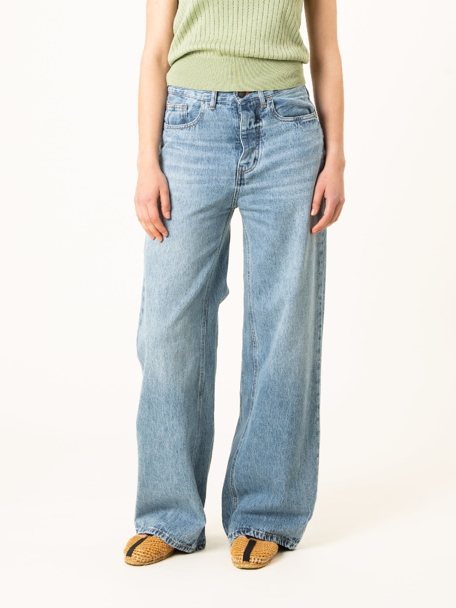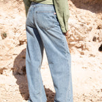 Maleni Vintage Light Blue son unos jeans low loose de alto. Con su silueta de campana y un tono vintage blue único, este modelo aporta un estilo retro y actual a la vez. Están diseñados y fabricados íntegramente en España bajo la producción local. Edición limitada.
