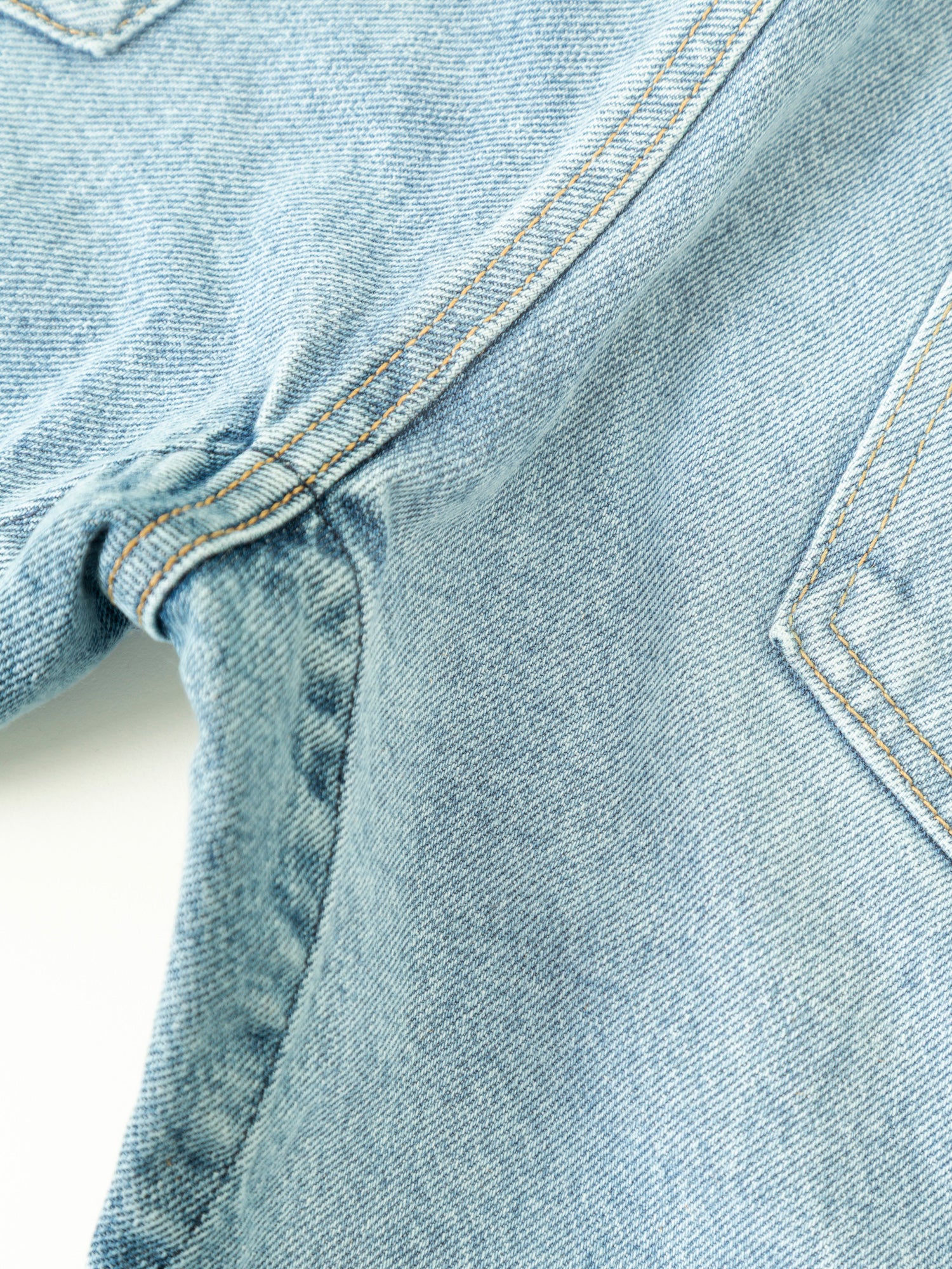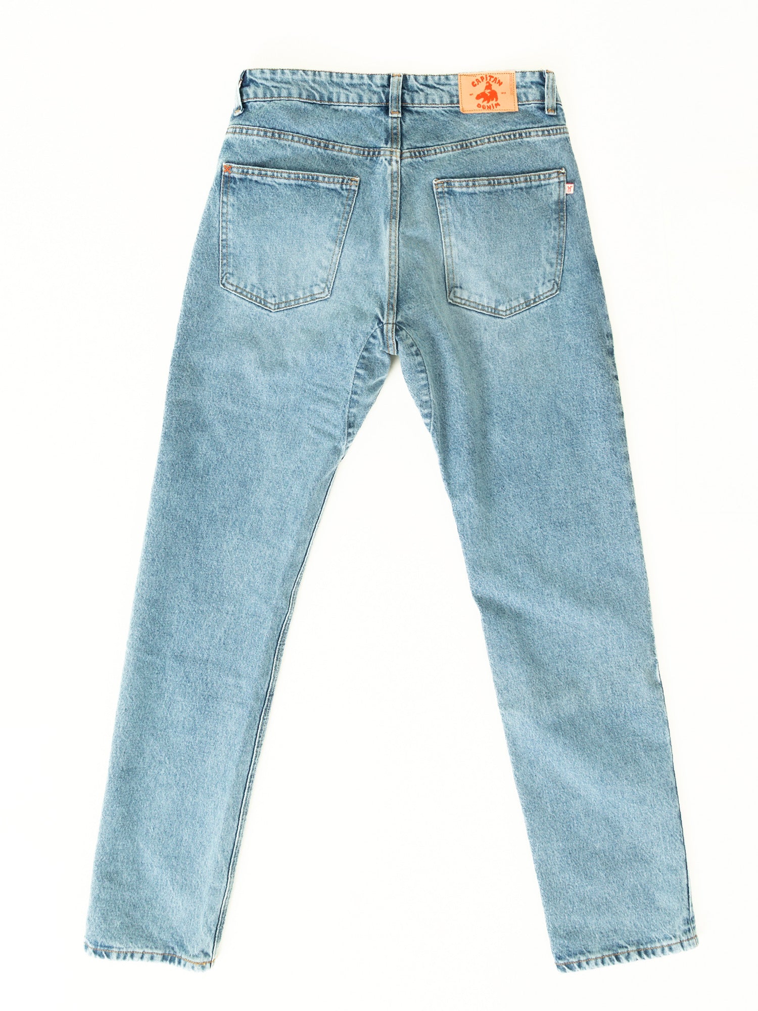 Fabricado en España con 100% algodón, este modelo mantiene la estética clásica del denim vintage y un tacto firme que mejora con el uso. Su corte recto y su tono atemporal lo convierten en un básico indispensable.