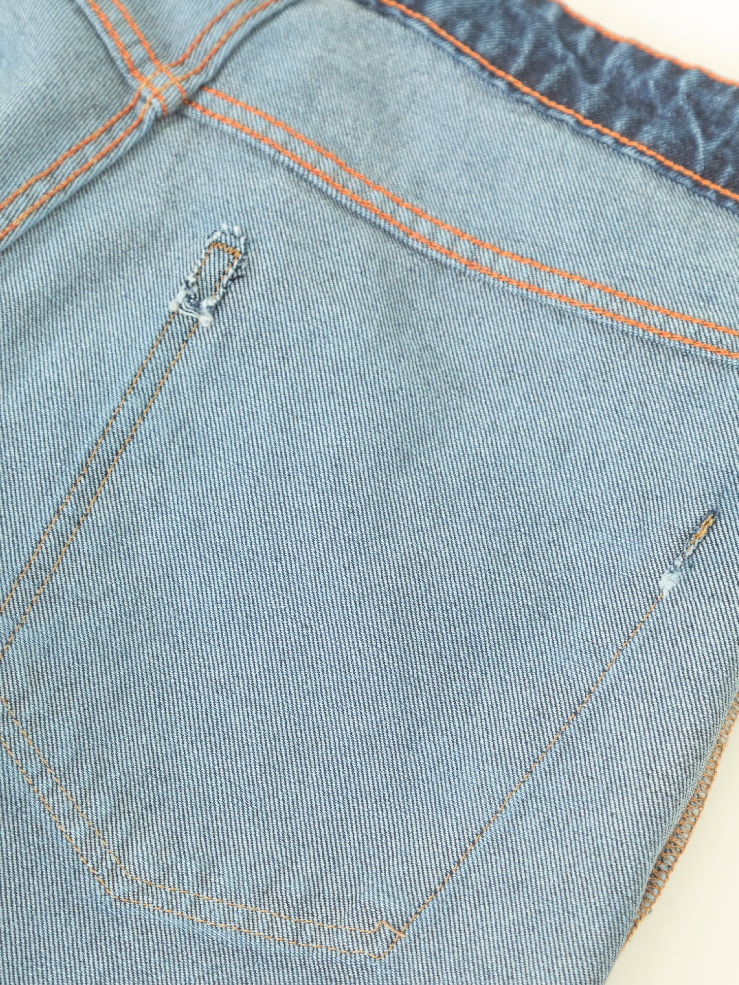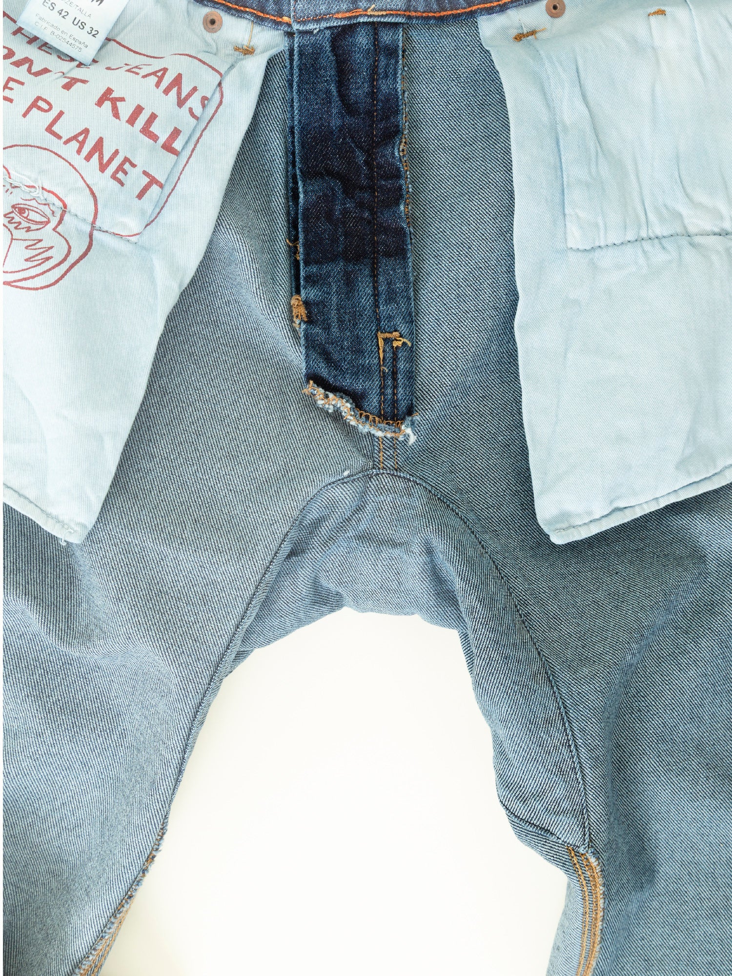 Remember to always wash it inside out, with the zipper, the button closed, with cold water and less than 30ºC. We recommend using neutral soap and keeping it in the compartment. Colored pants with a worn effect may lose some color after washing.