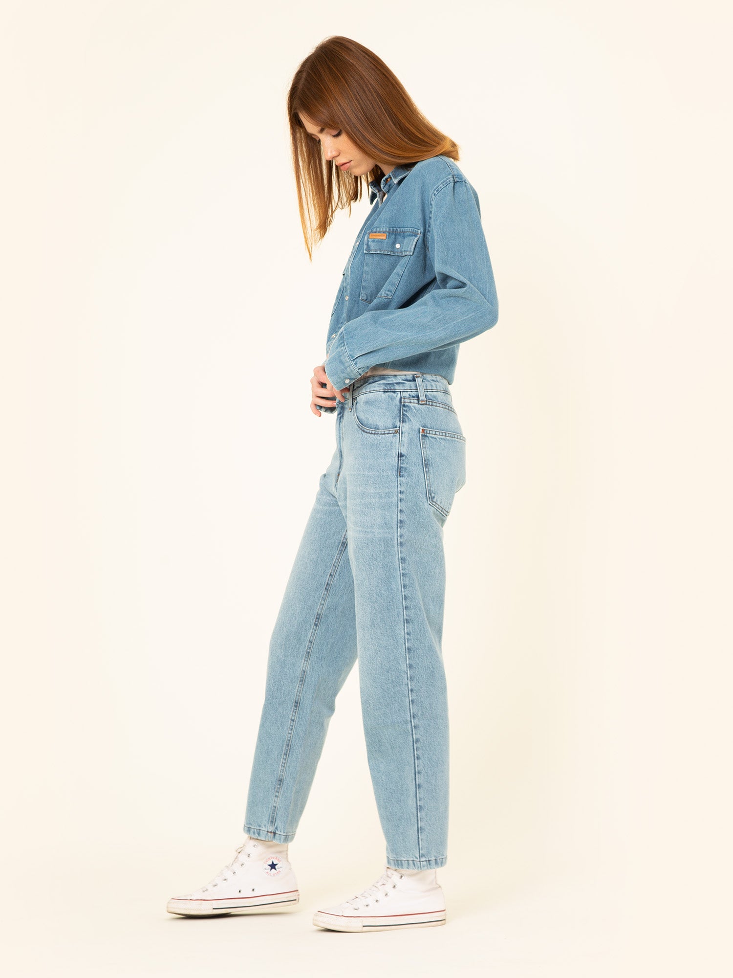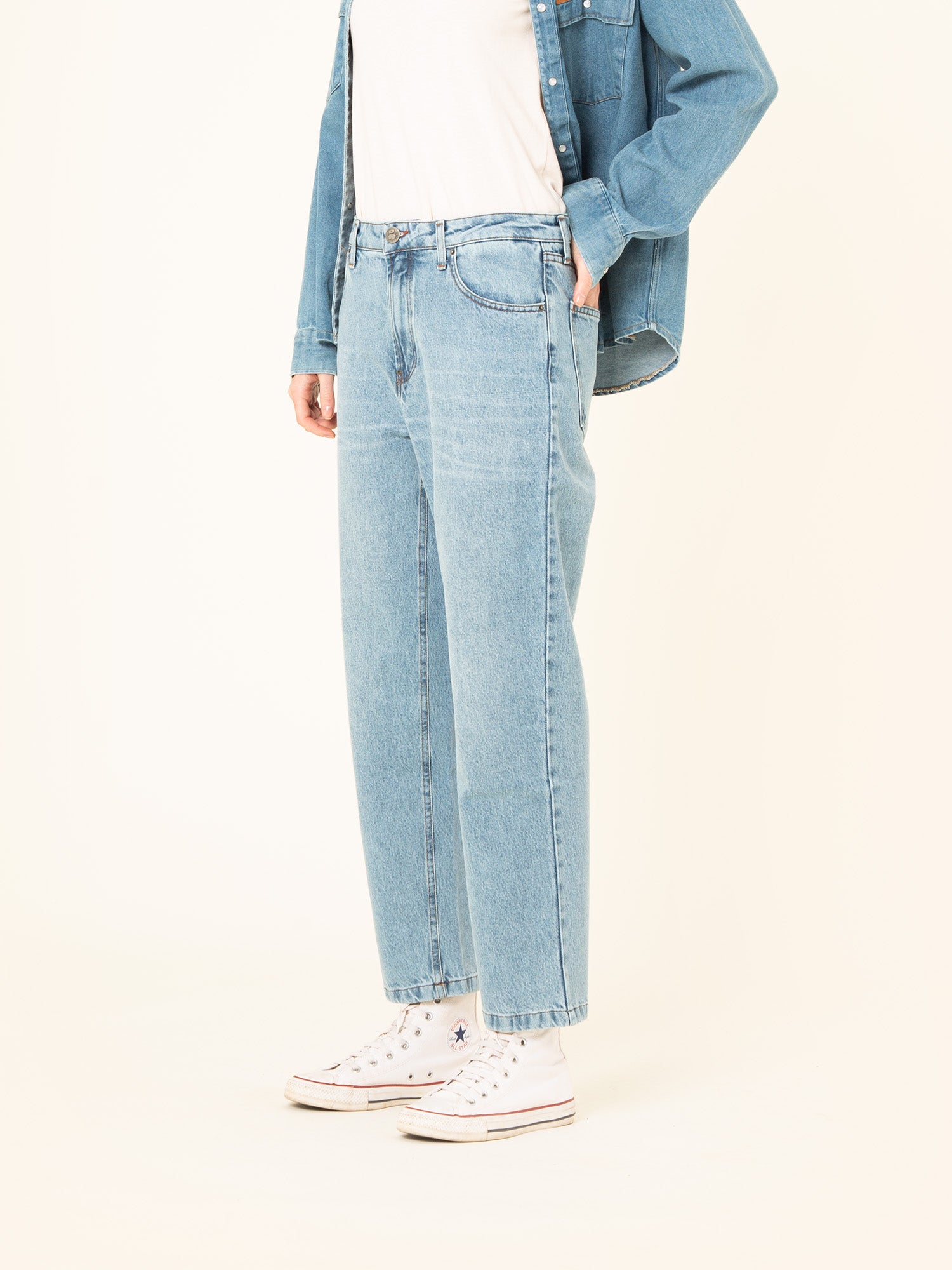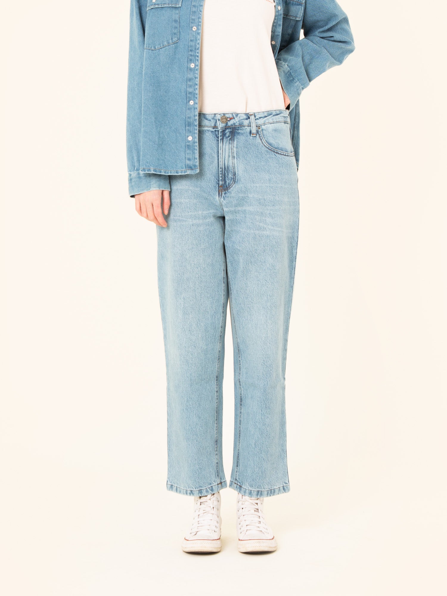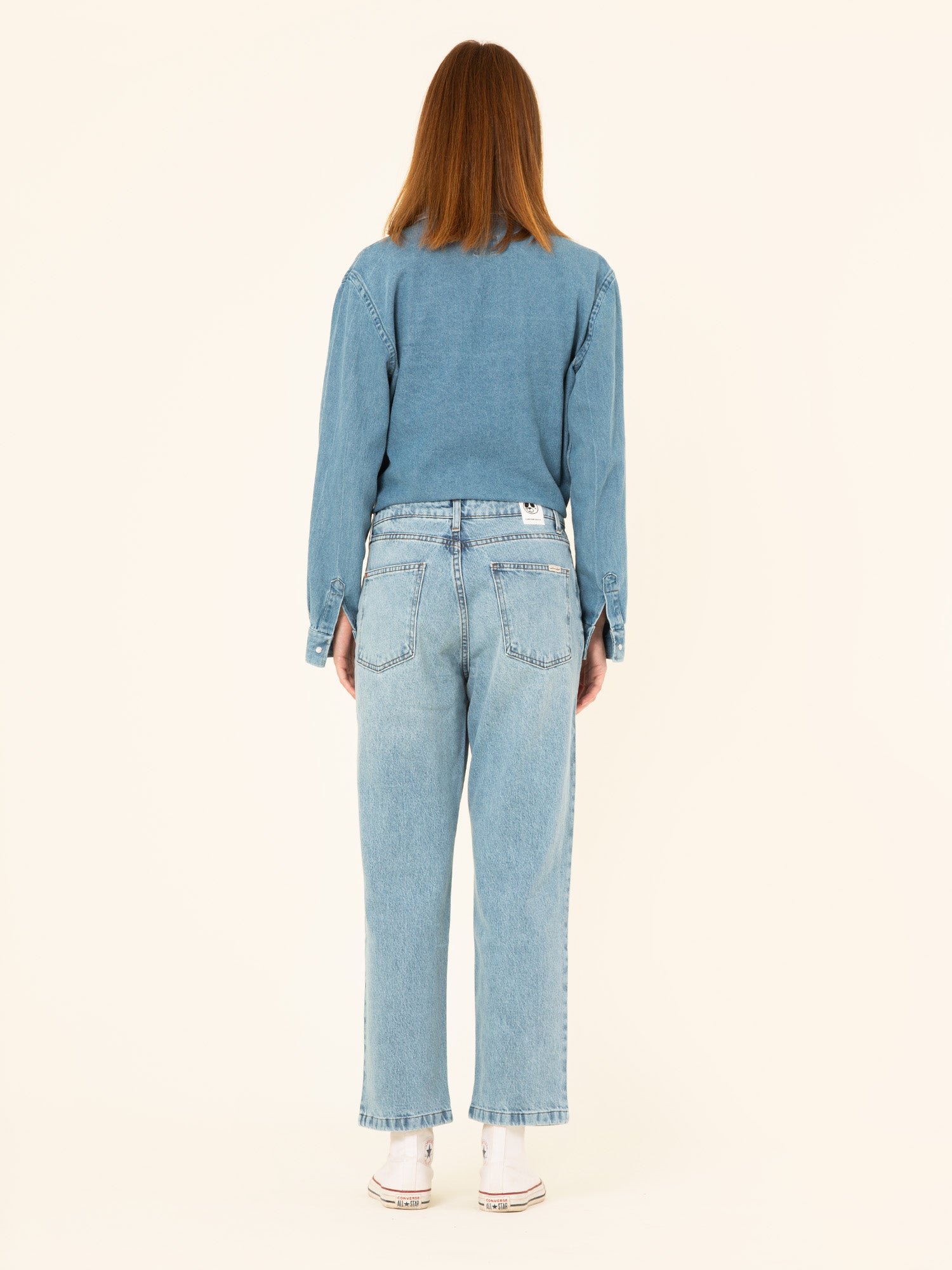Remember to always wash it inside out, with the zipper, the button closed, with cold water and less than 30ºC. We recommend using neutral soap and keeping it in the compartment. Colored pants with a worn effect may lose some color after washing.