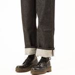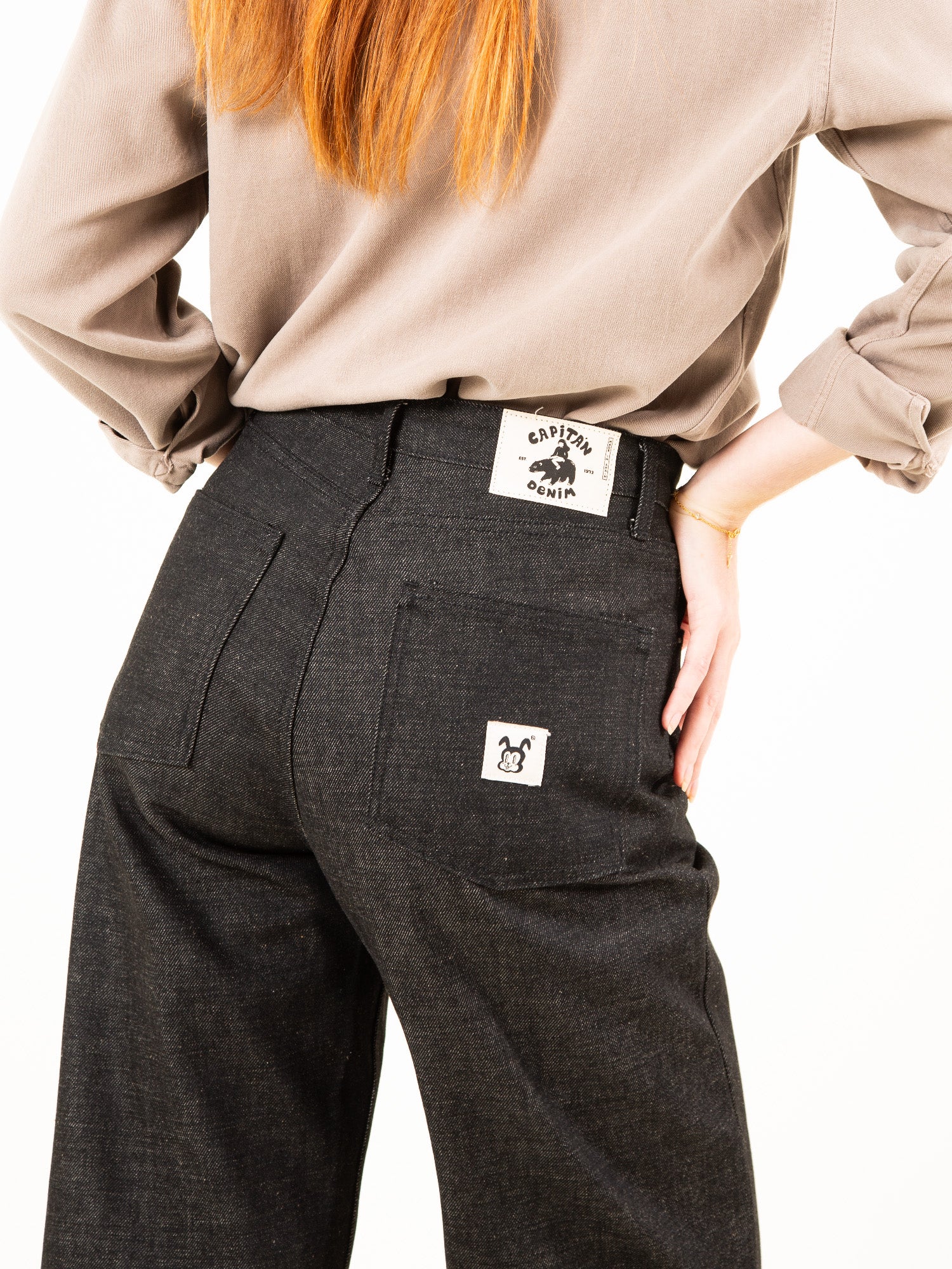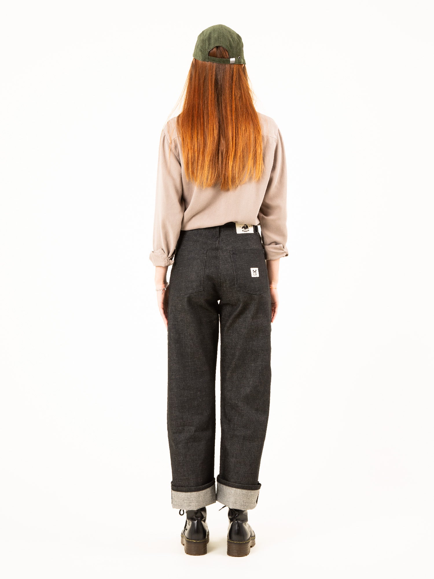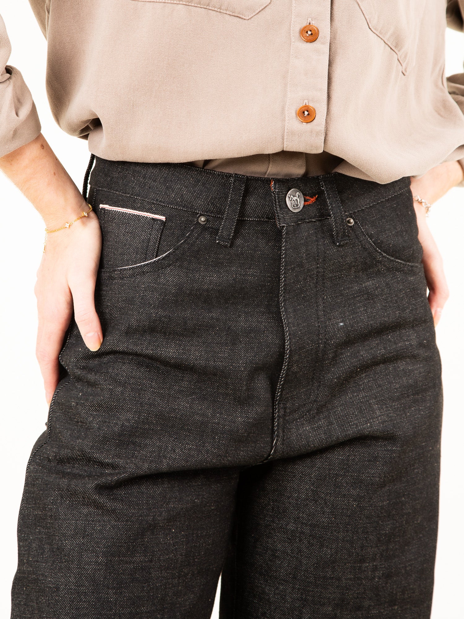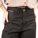 Wynette Selvedge Black es uno de los tesoros de Capitán Denim. Nuestros primeros tejanos Selvedge de algodón reciclado, confeccionados con uno de los tejidos más exclusivos del mundo del denim. Un vaquero de corte recto y cintura media, diseñado para durar y pensado para quien busca una prenda única, honesta y especial.