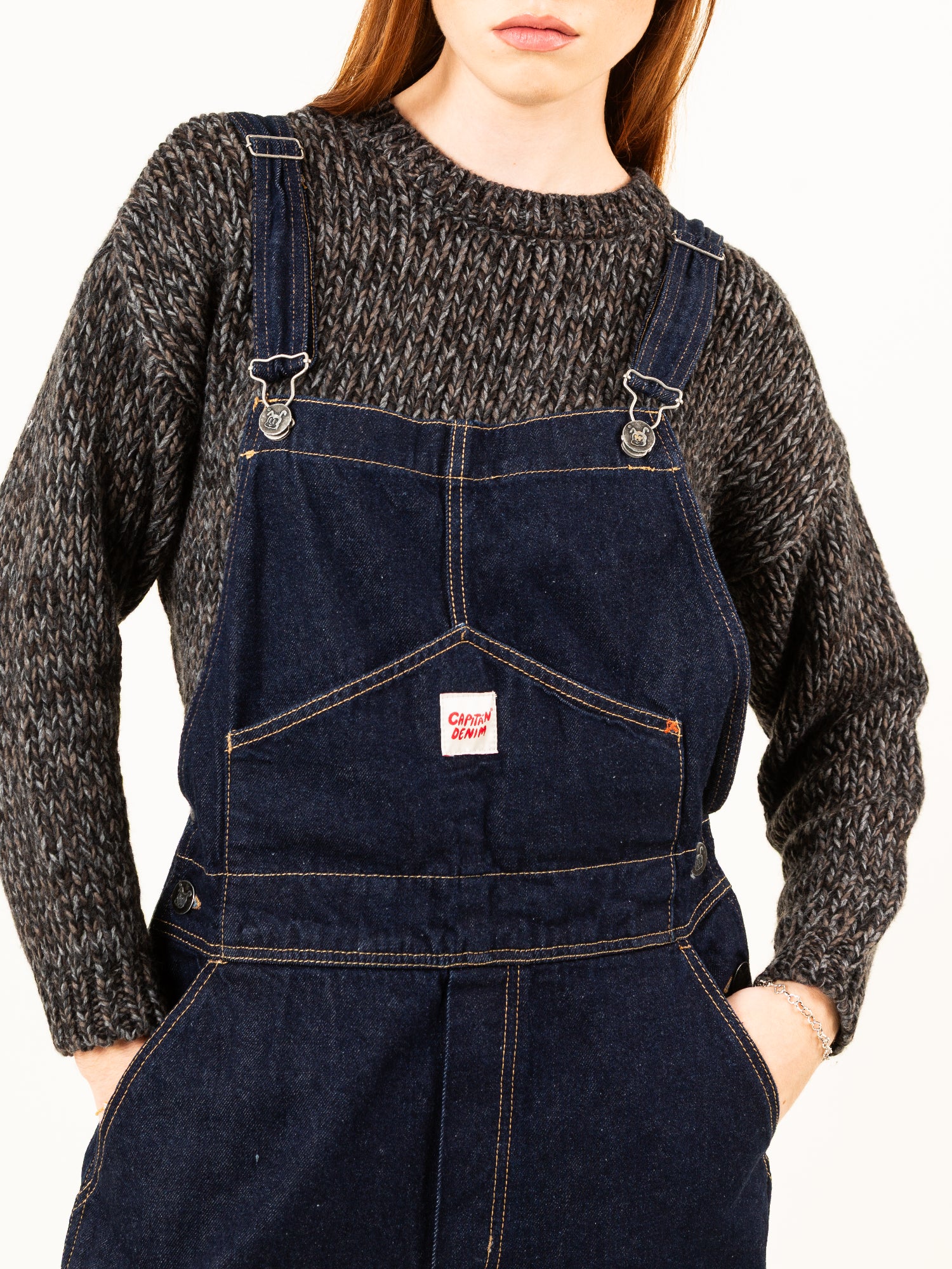 El nuevo peto vaquero Jones Dark Blue mantiene el diseño clásico del peto Capitán Denim, pero con un fit oversize más amplio y un patrón unisex.