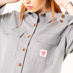 La camisa Bessie Grey Dawn será tu aliada perfecta para el día a día. Confeccionada en 100% TENCEL™ Lyocell fibers, destaca por su suavidad, caída fluida y brillo natural.