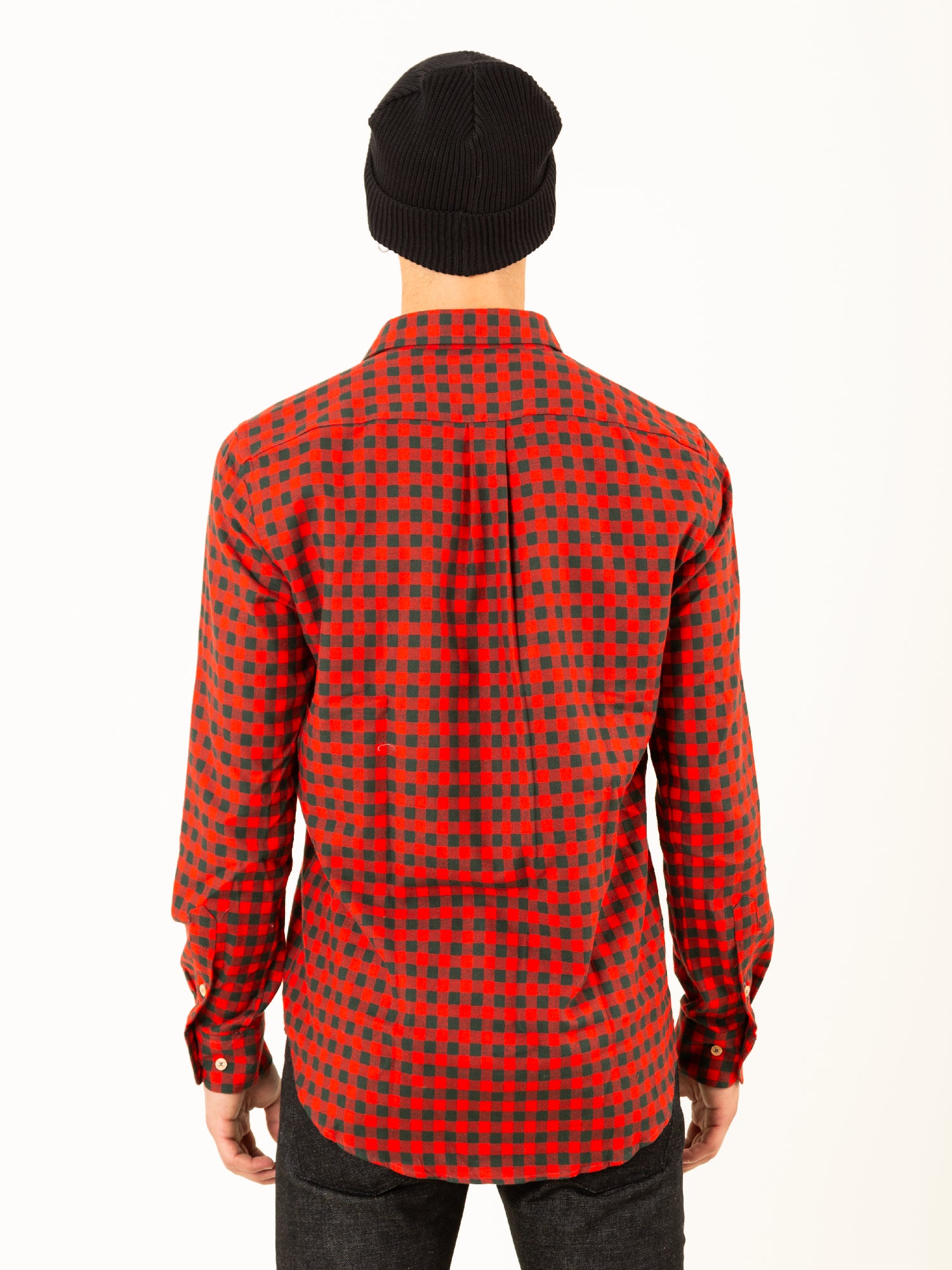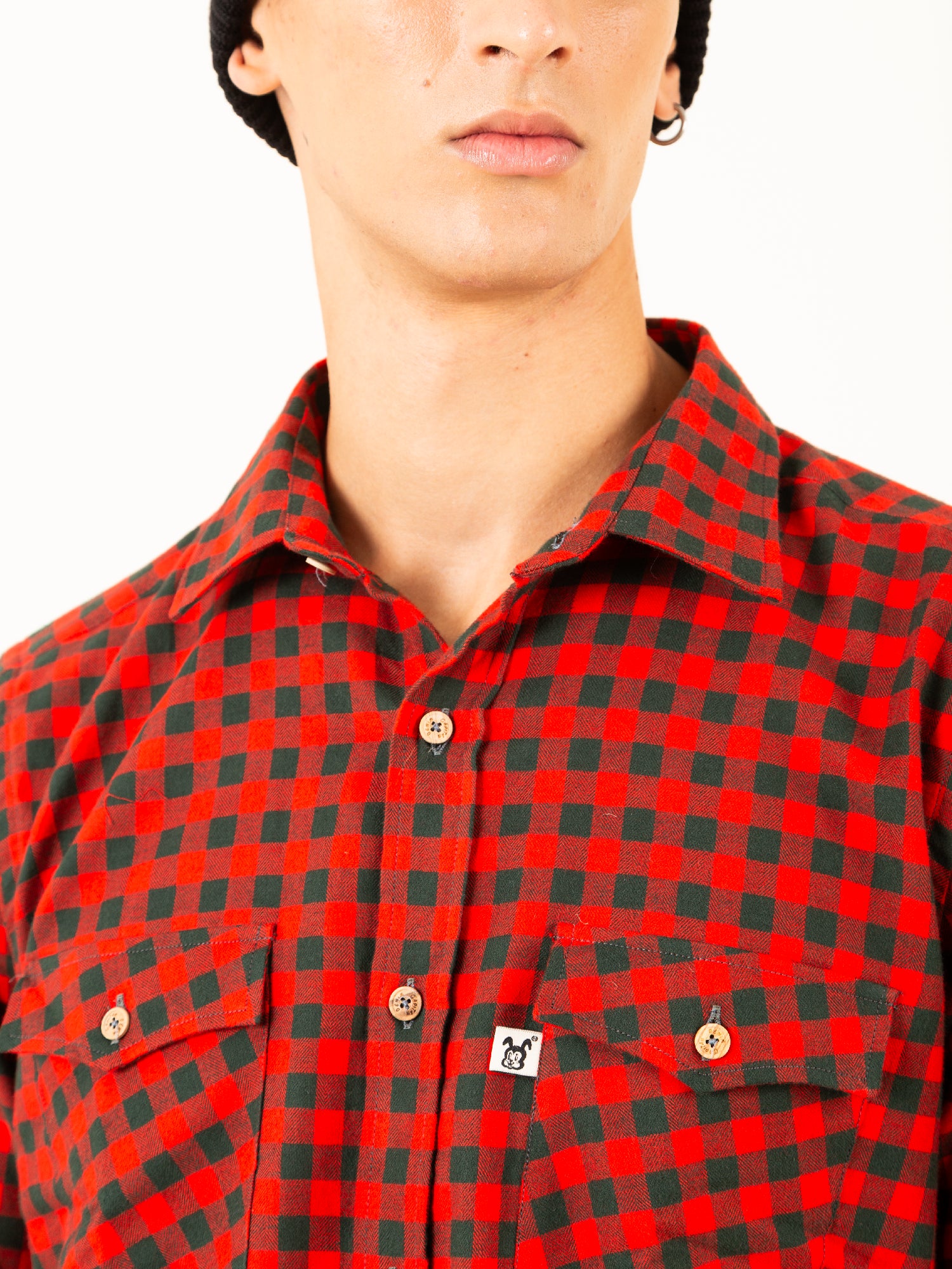 La camisa Furay Red Plaid Flannel es el clásico de invierno reinventado. Su tejido de franela de algodón orgánico ofrece una textura cálida y cómoda, con un estampado de cuadros rojos y verdes que evocan el estilo worker tradicional.