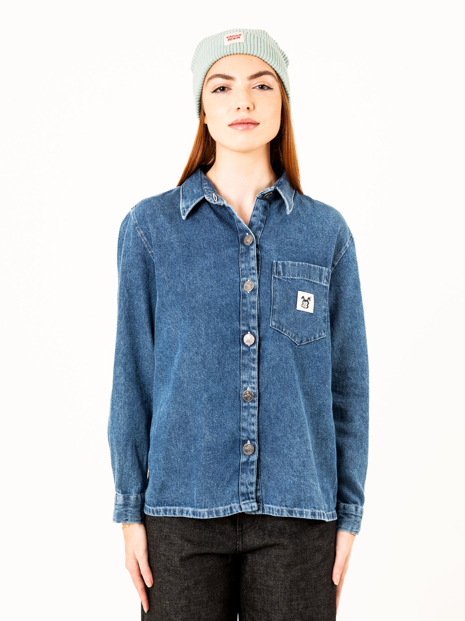 La camisa Graciela Blue Vintage Denim es una prenda esencial reinterpretada con el sello Capitán Denim.