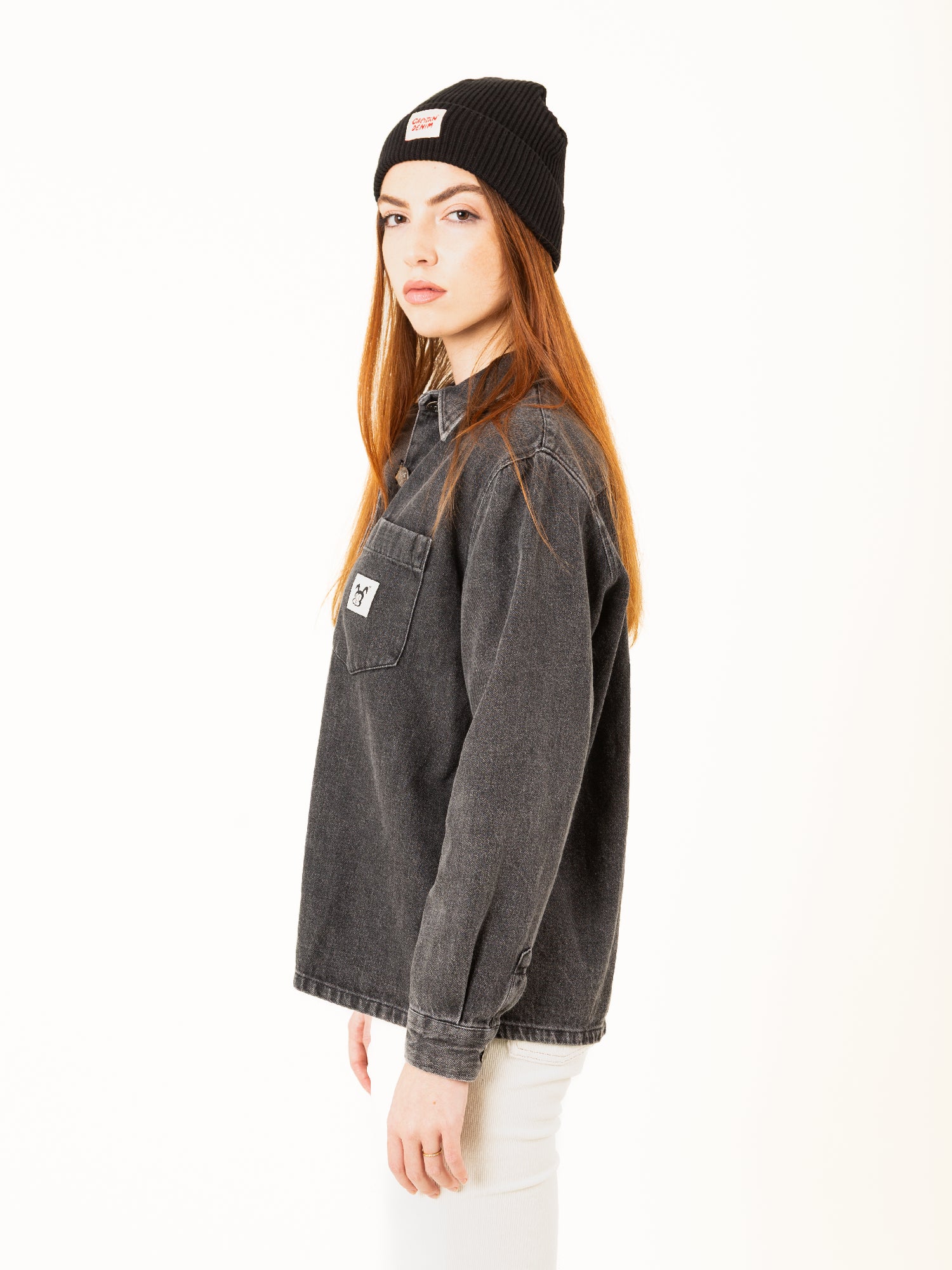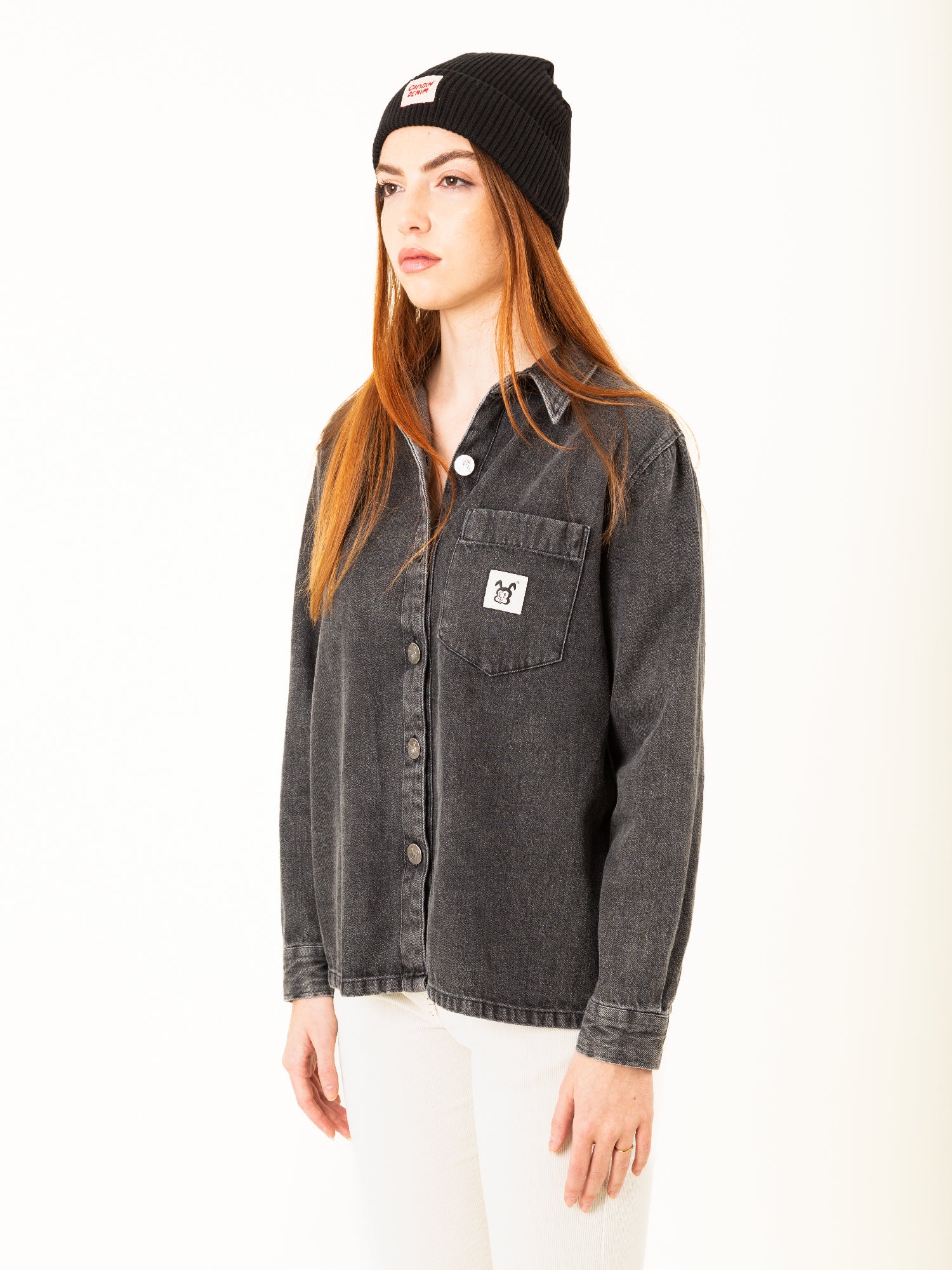 • Bolsillo delantero con parche Capitán Denim.