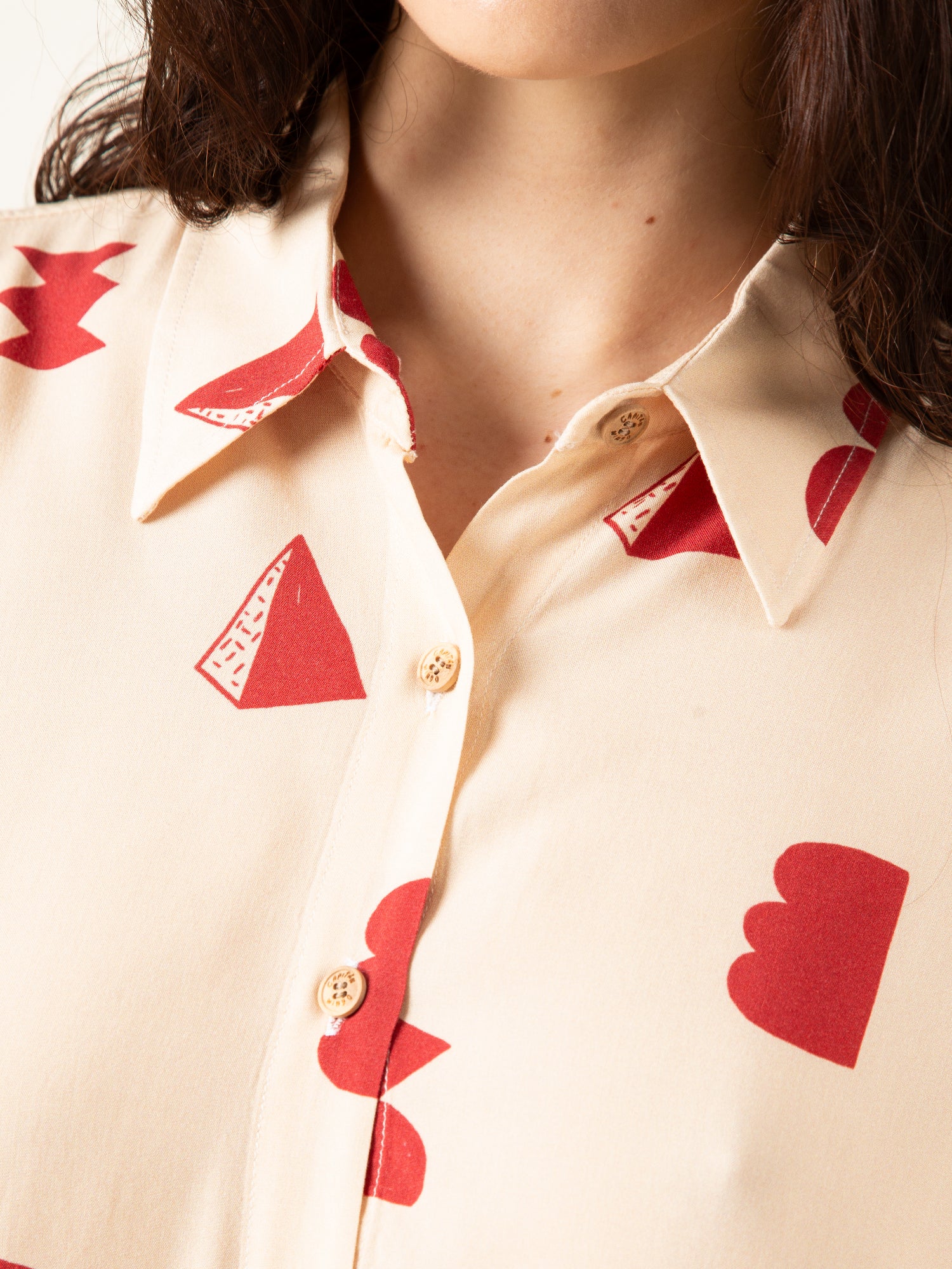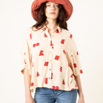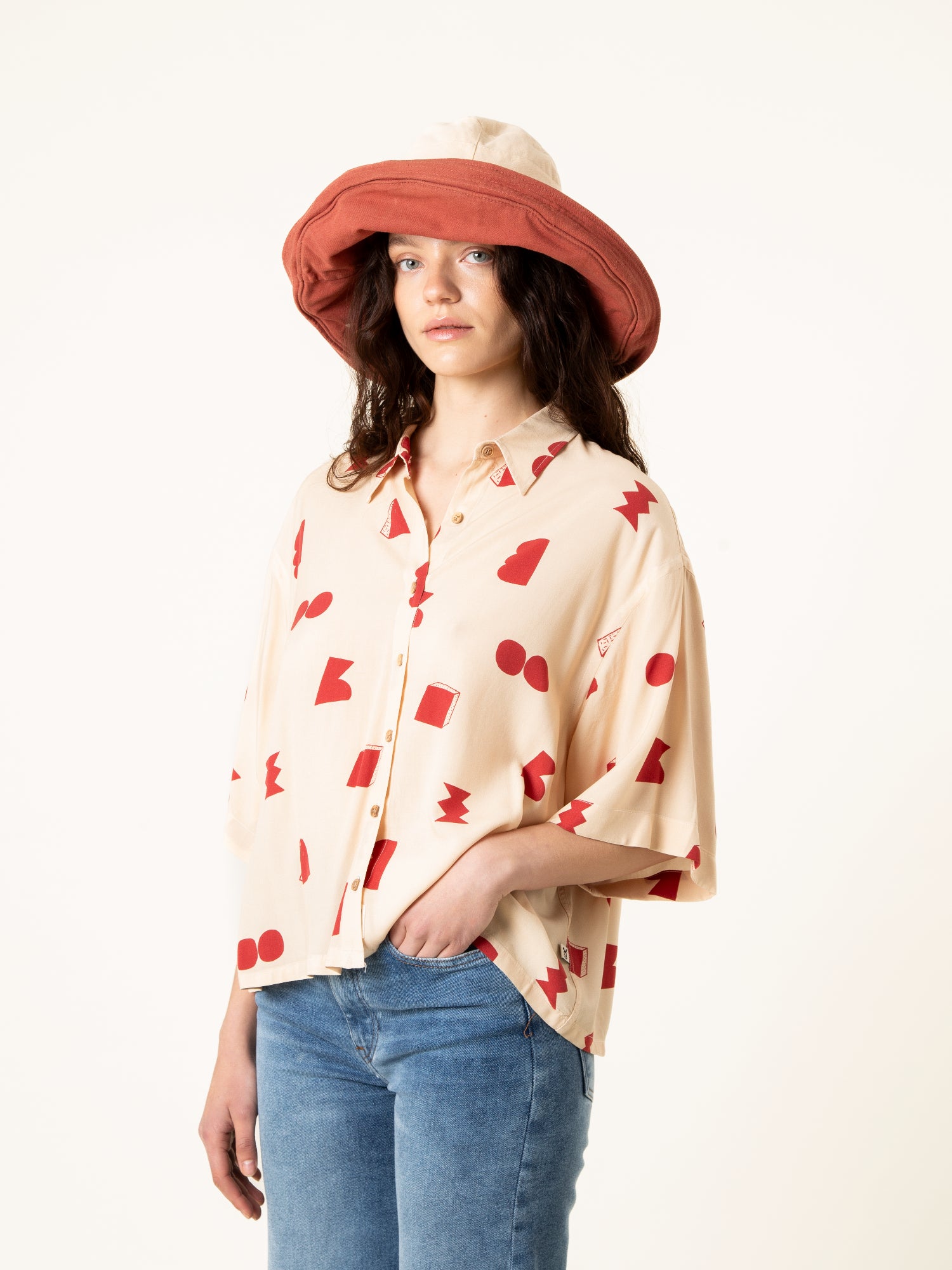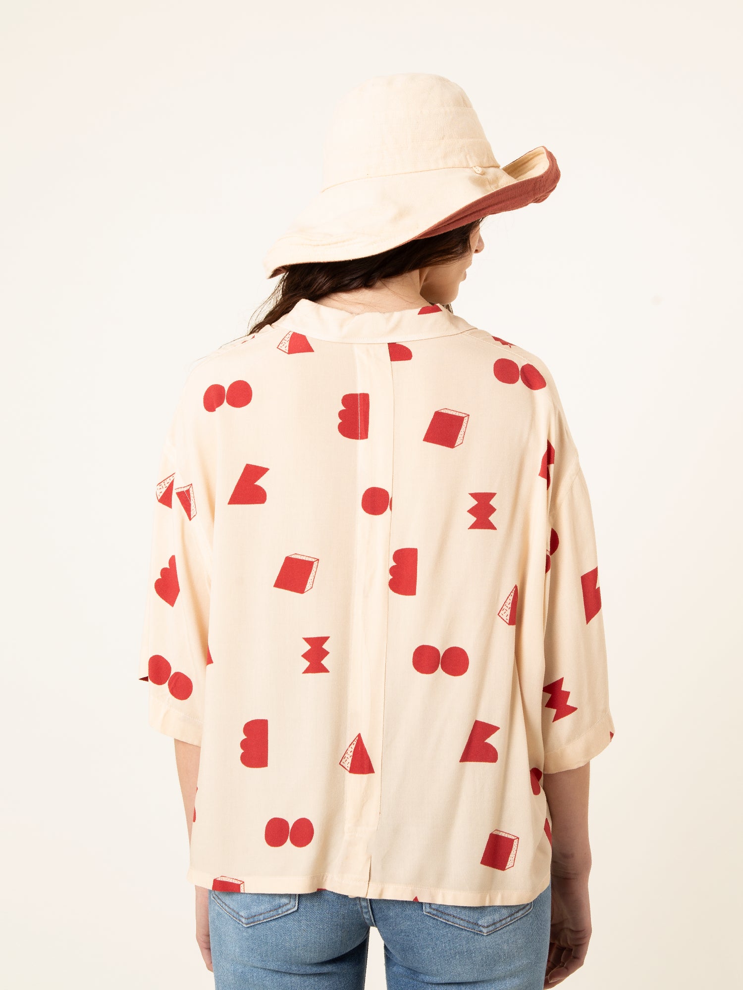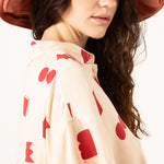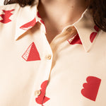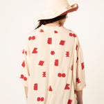 La Camisa Paz Crudo Formas es una prenda luminosa y minimalista con un toque artístico. Su base en tono crudo, combinada con un estampado geométrico en rojo, crea un equilibrio perfecto entre sencillez y personalidad.