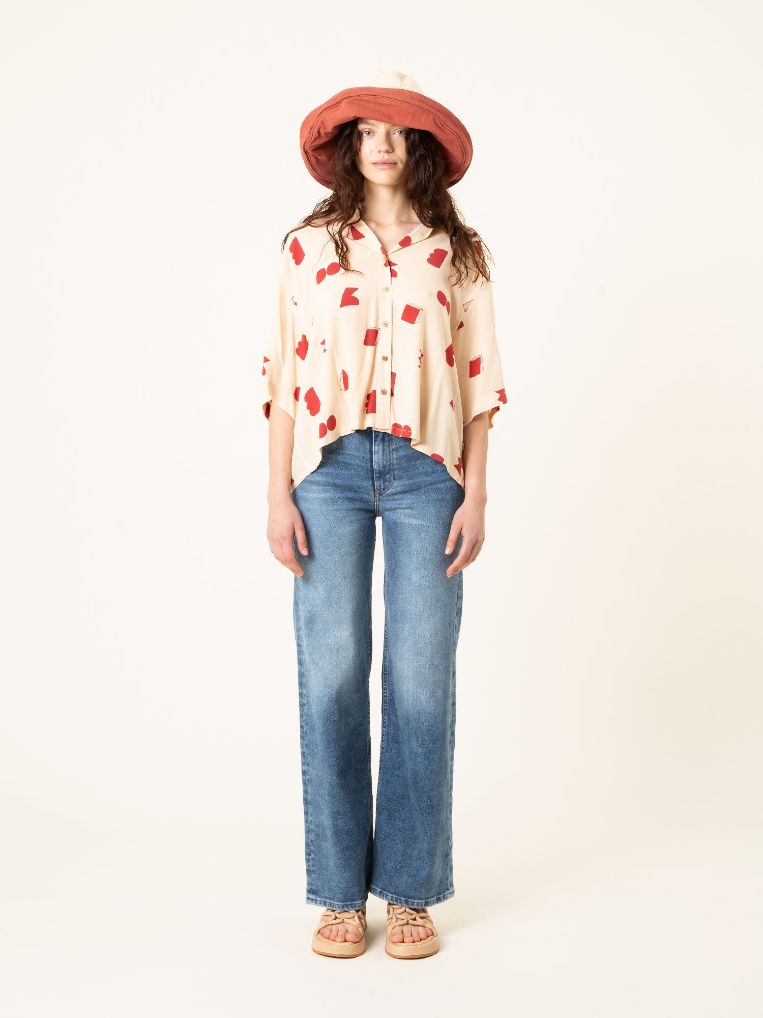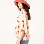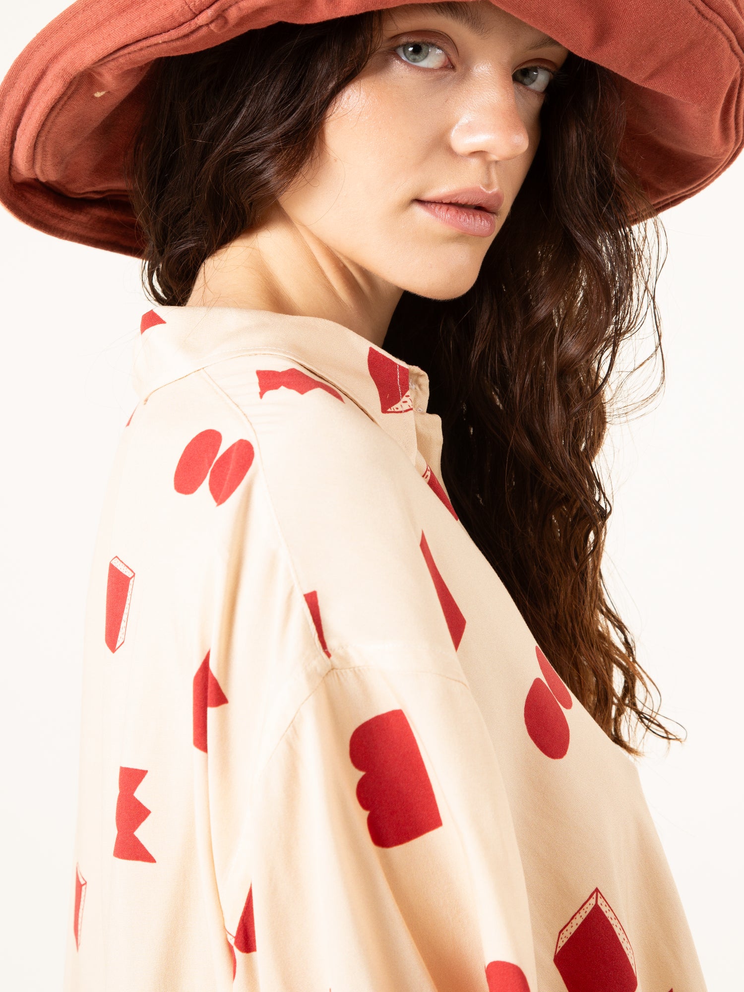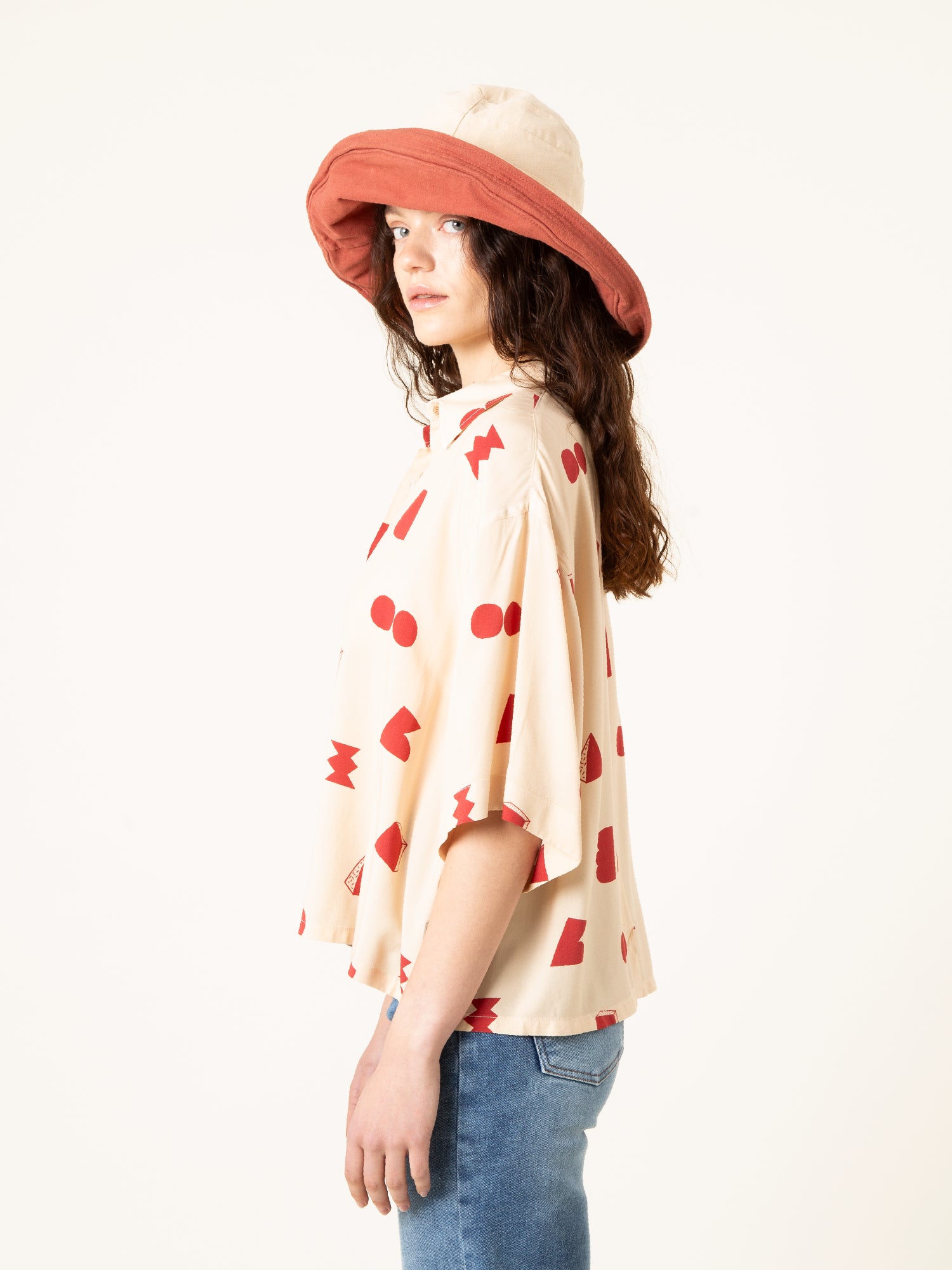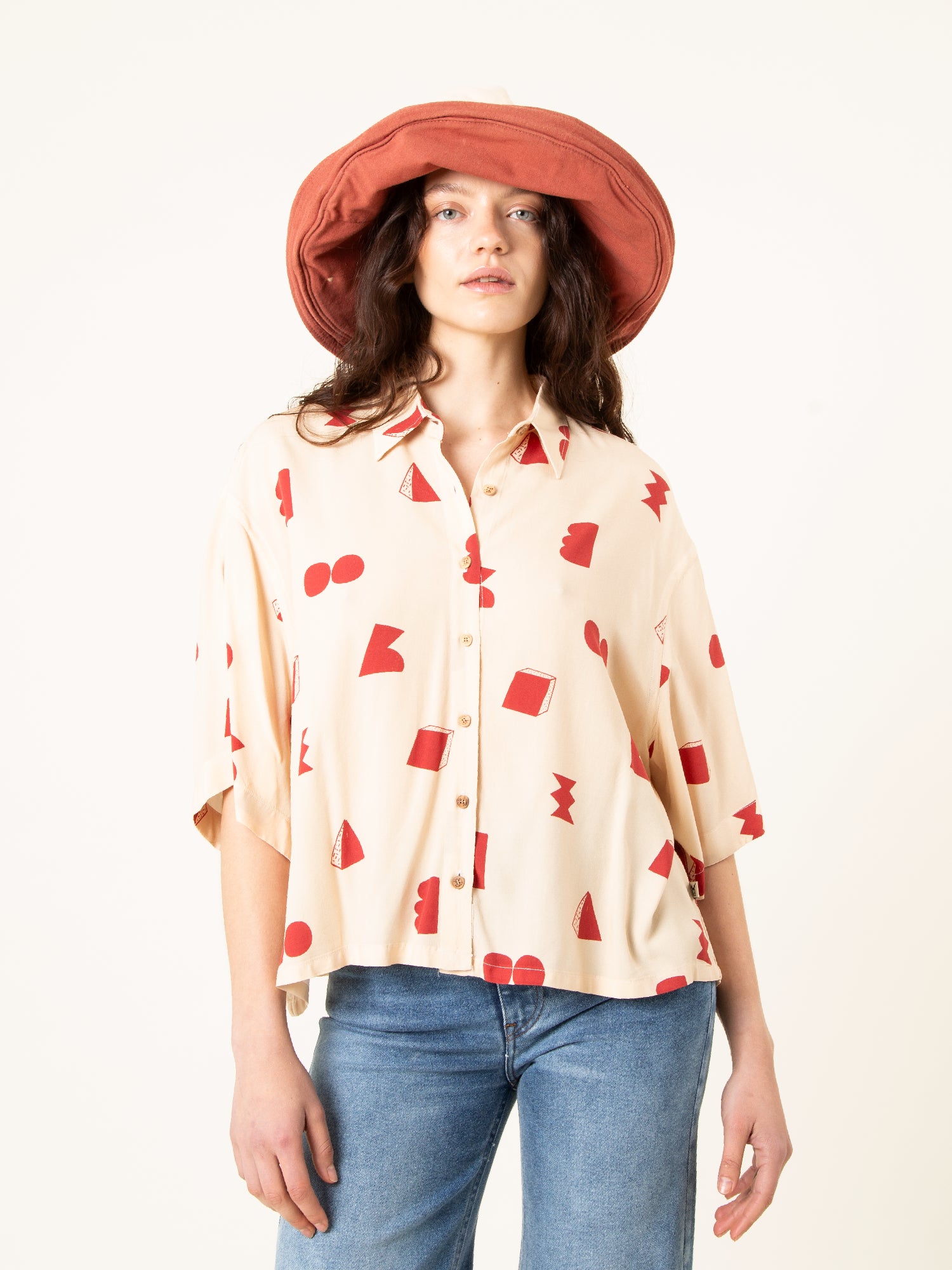 La Camisa Paz Crudo Formas es una prenda luminosa y minimalista con un toque artístico. Su base en tono crudo, combinada con un estampado geométrico en rojo, crea un equilibrio perfecto entre sencillez y personalidad.