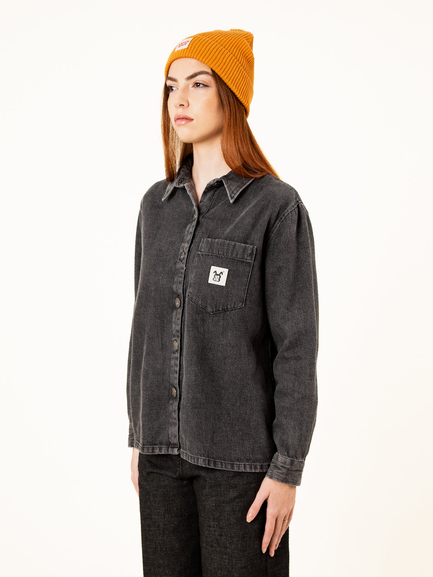 La camisa Pixie Grey Vintage Denim es una prenda unisex confeccionada en 100% algodón. Su tono gris lavado y su acabado suave aportan un estilo relajado y contemporáneo.
