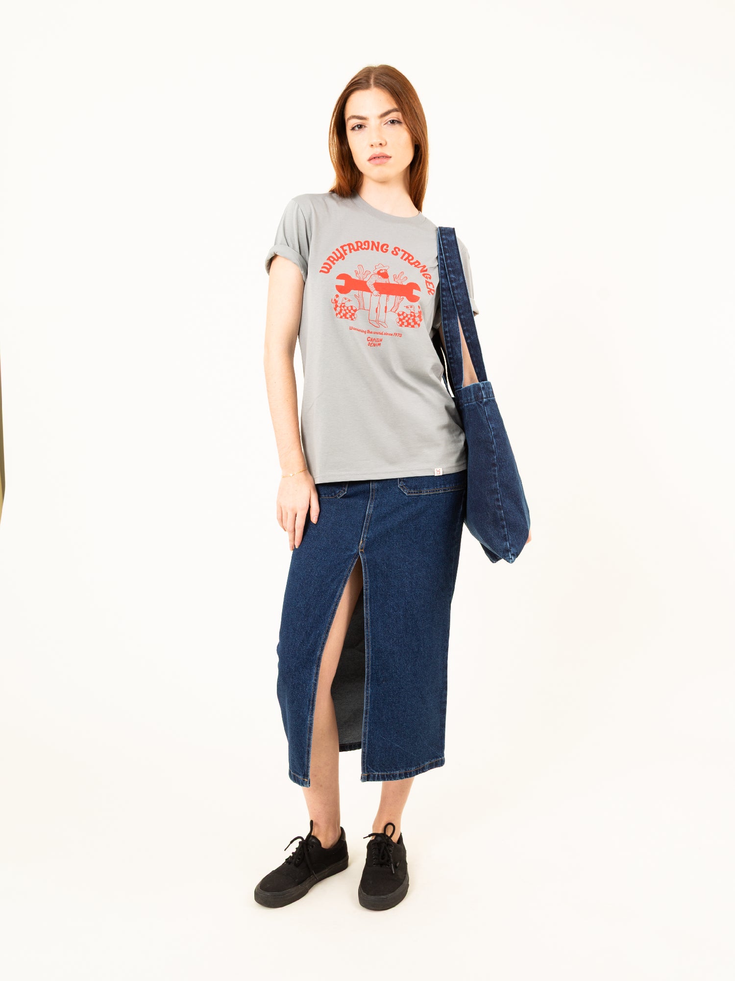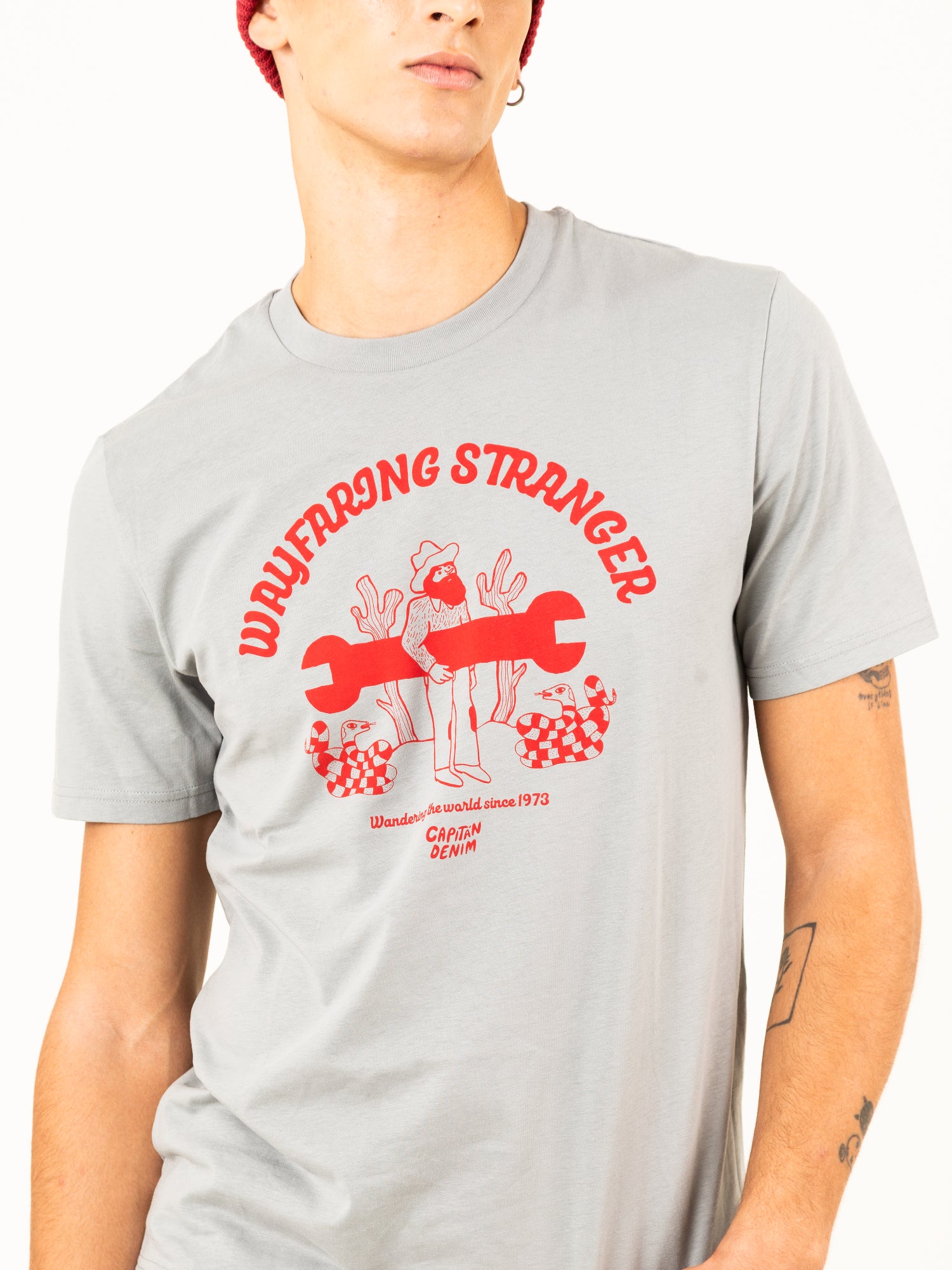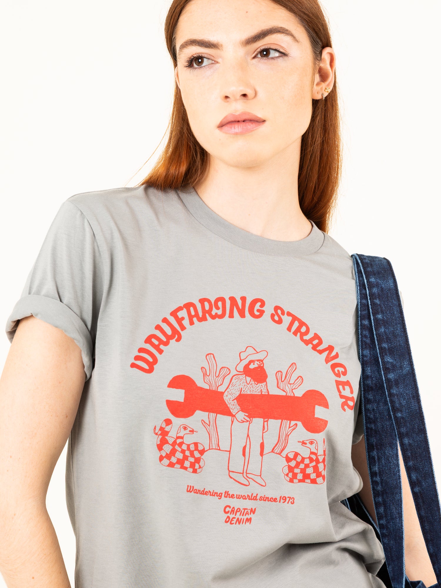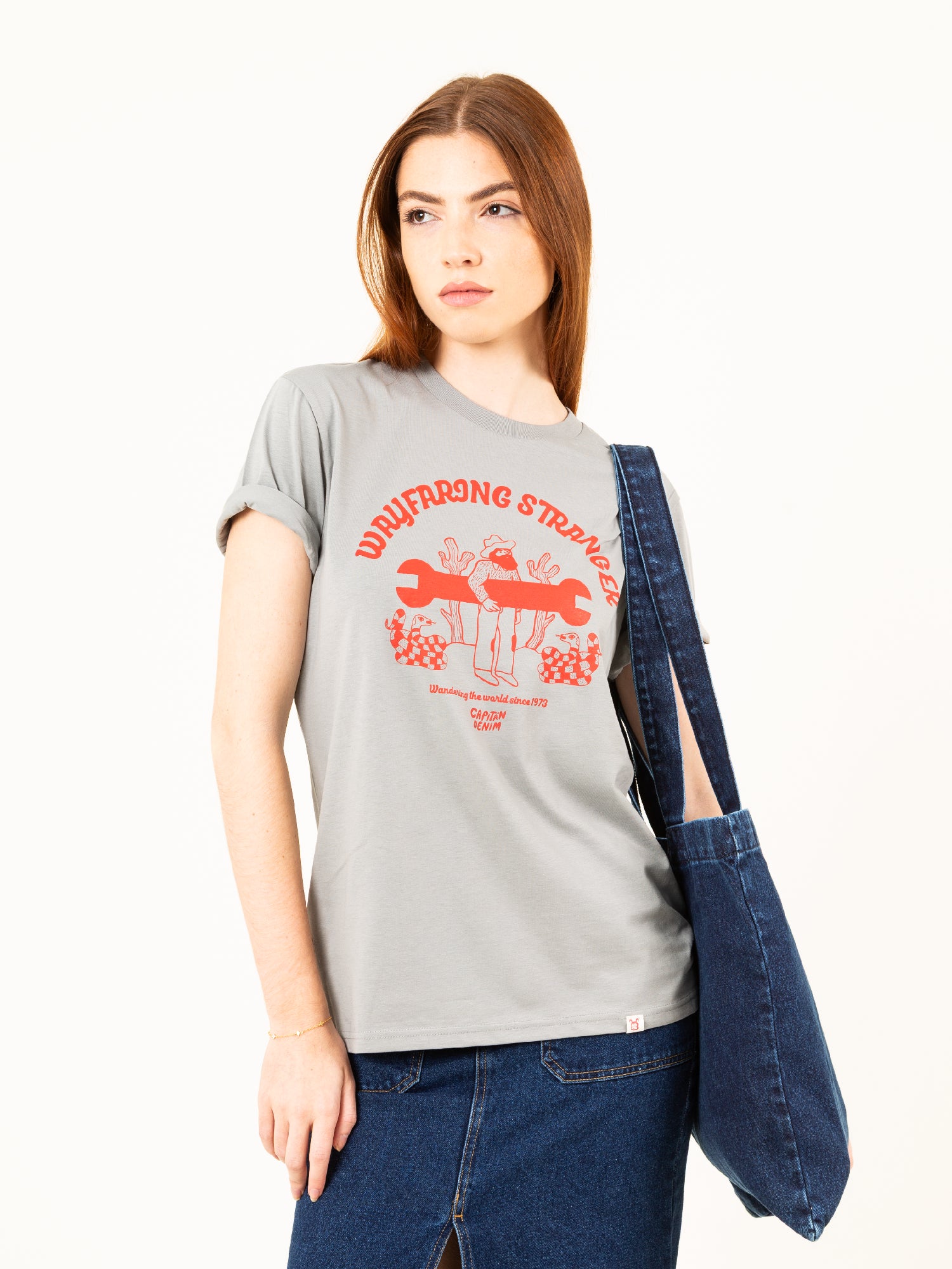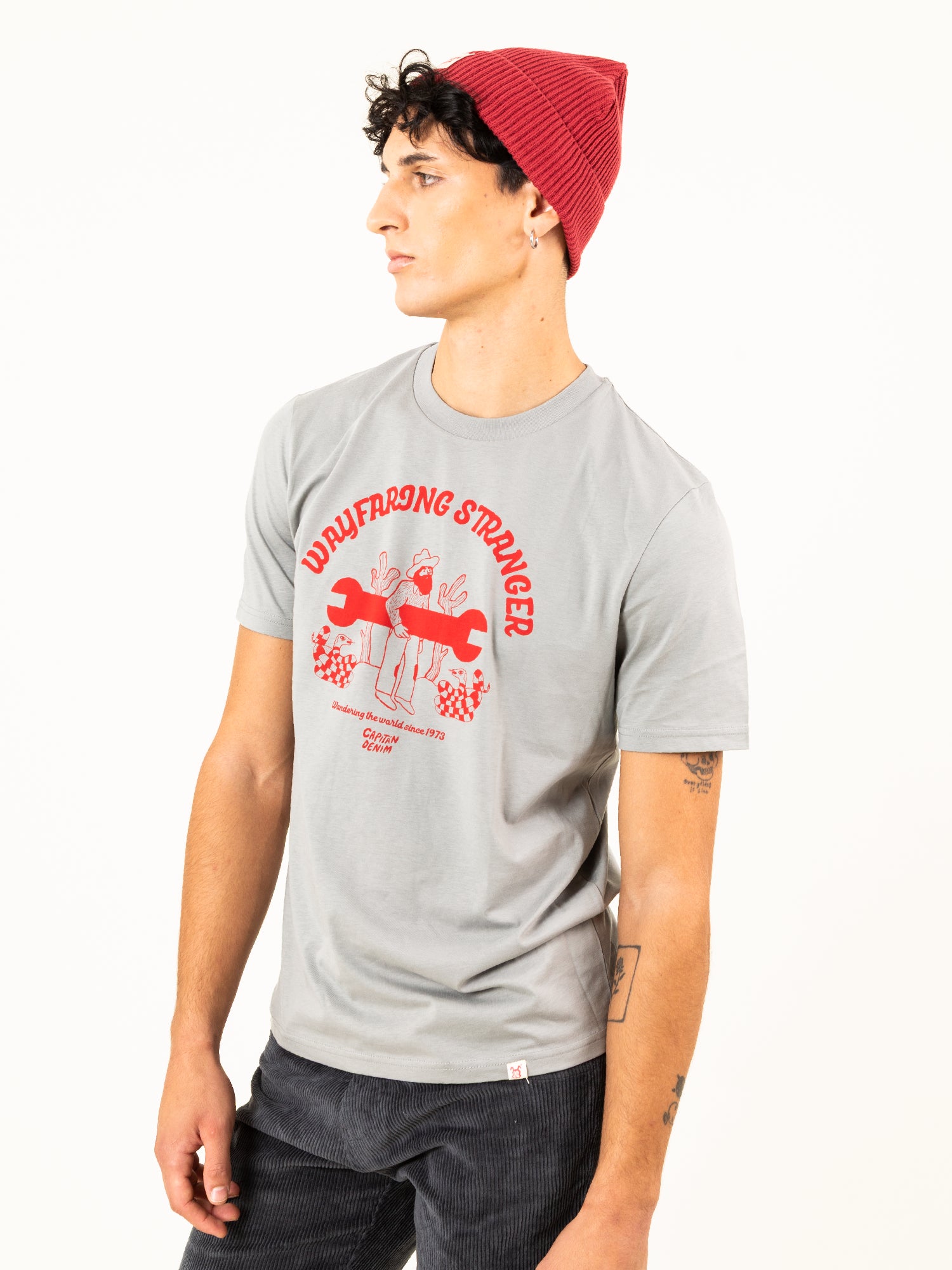 La camiseta Wayfaring Grey combina comodidad, estilo y un toque nostálgico. Su color gris claro y su gráfico central en rojo evocan el espíritu viajero y libre de los años setenta.
