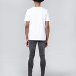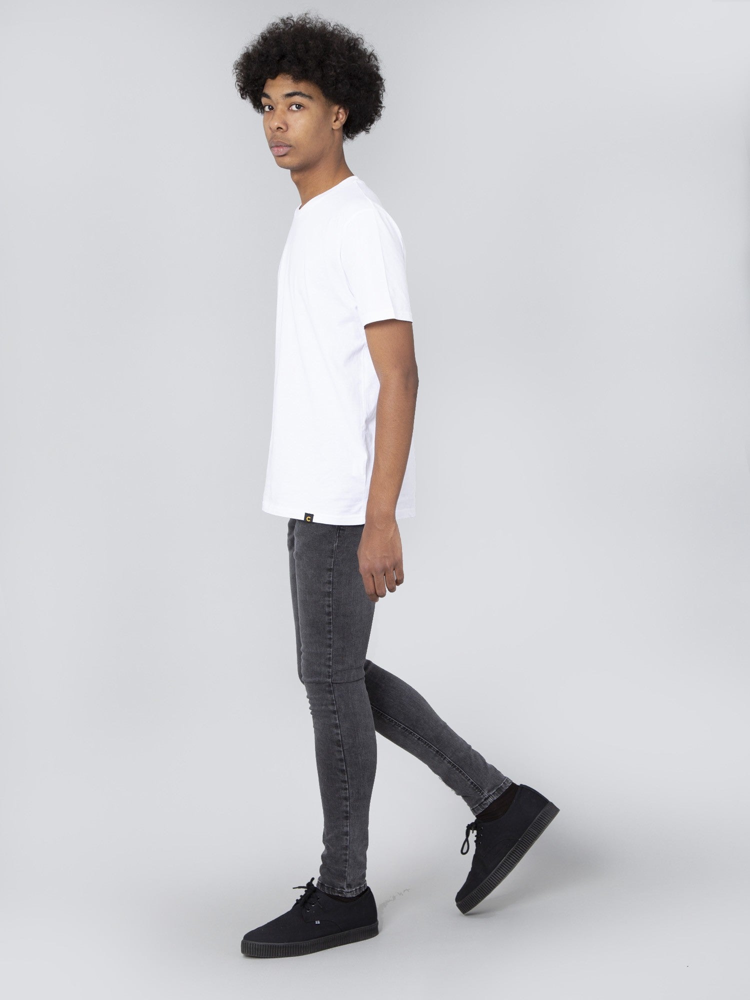Jeans skinny de hombre de cintura media con desgastes. Hecho en España de manera sostenible y con desgastes en óxido muy naturales. Gracias al mínimo de elastano que contiene, hace que se adapte a tu día a día sin problema. Al llevar desgastes oxidados, es perfecto para darle un toque más desenfadado a tu look.