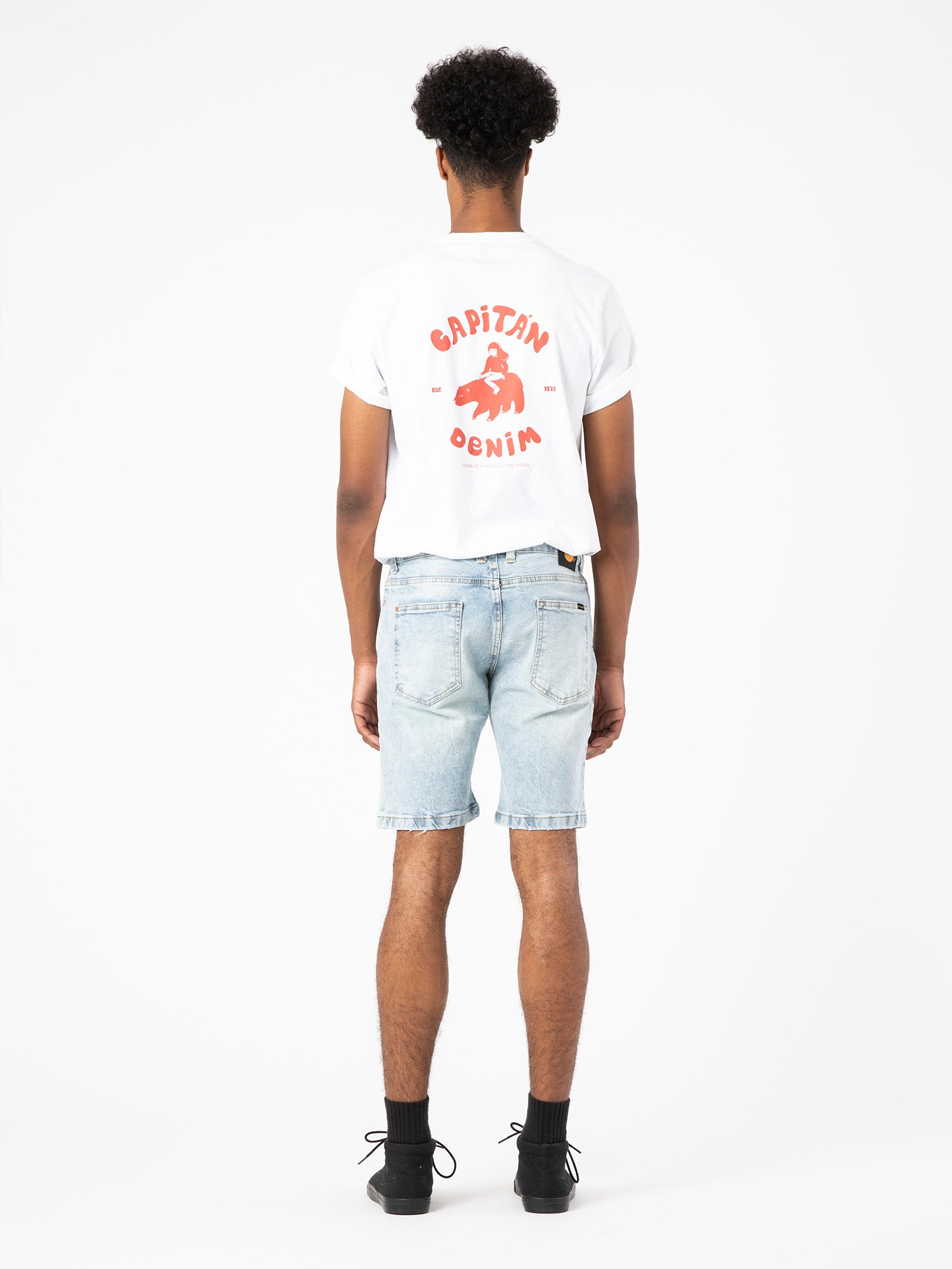 Las bermudas vaqueras Jay sunny blue son unos pantalones denim en azul claro hechos en España. Son 5 bolsillos y con sus acabados son muy versátiles. Además contienen elastano para que sean mucho más cómodos. Un básico sostenible.