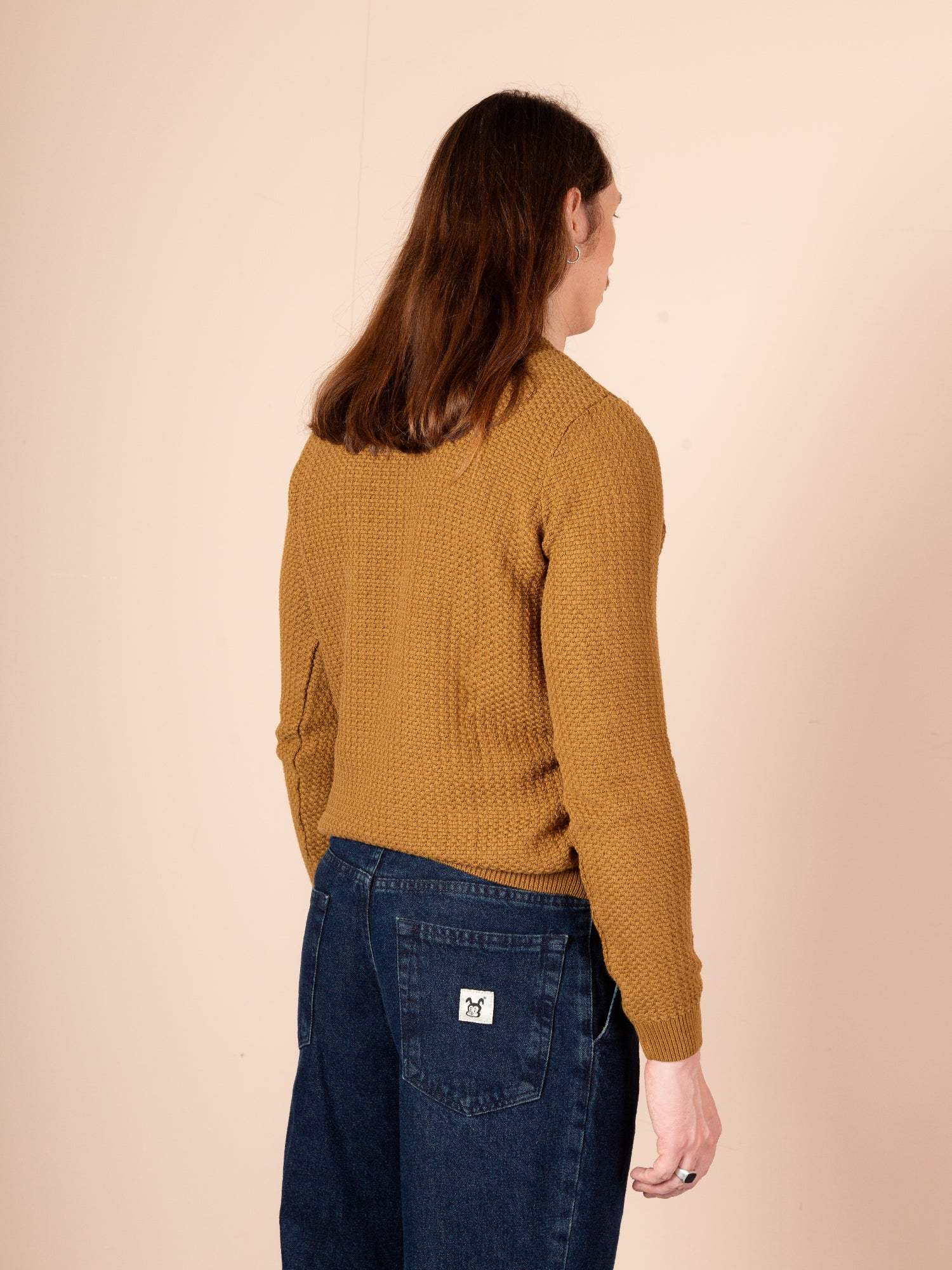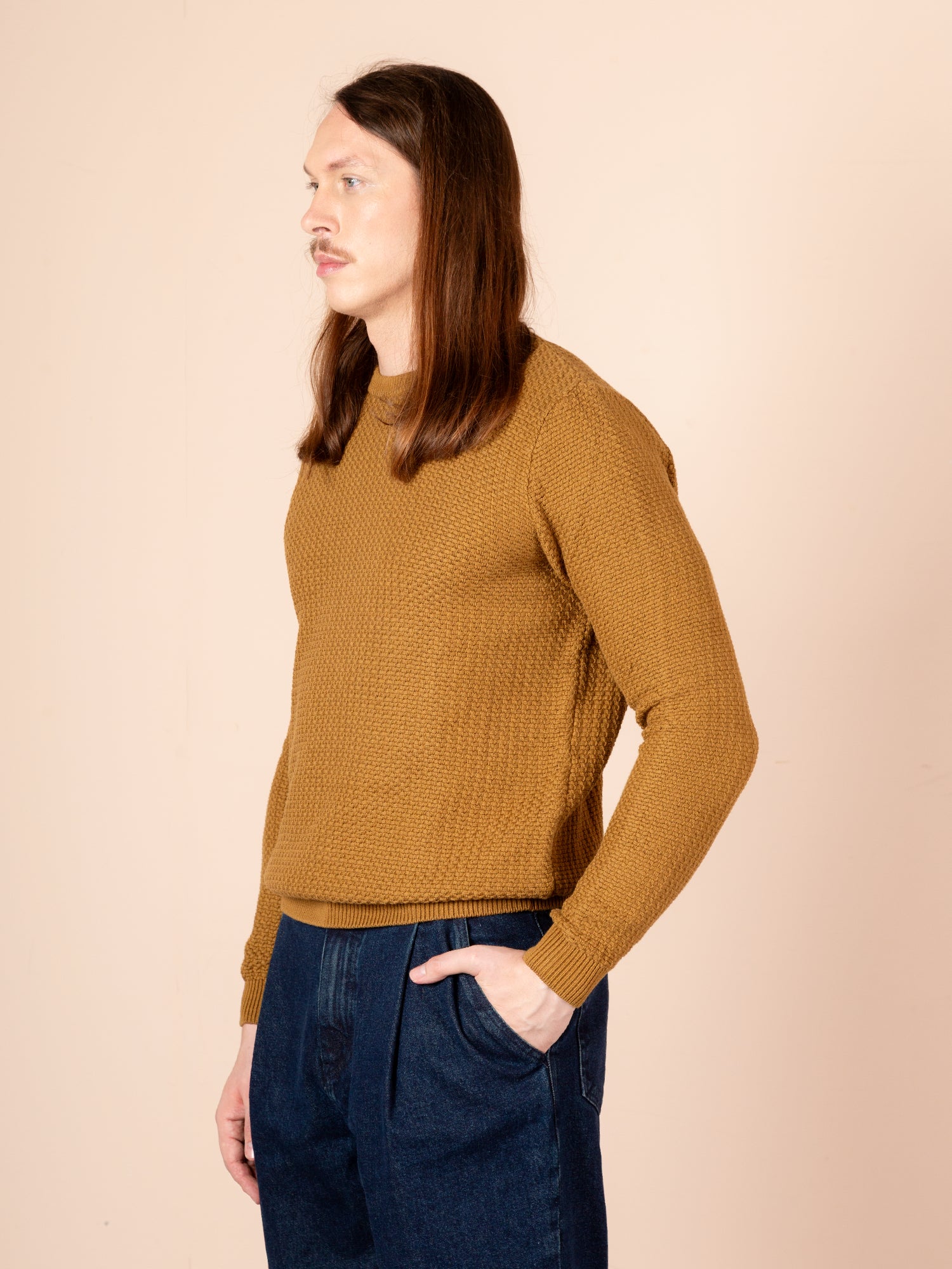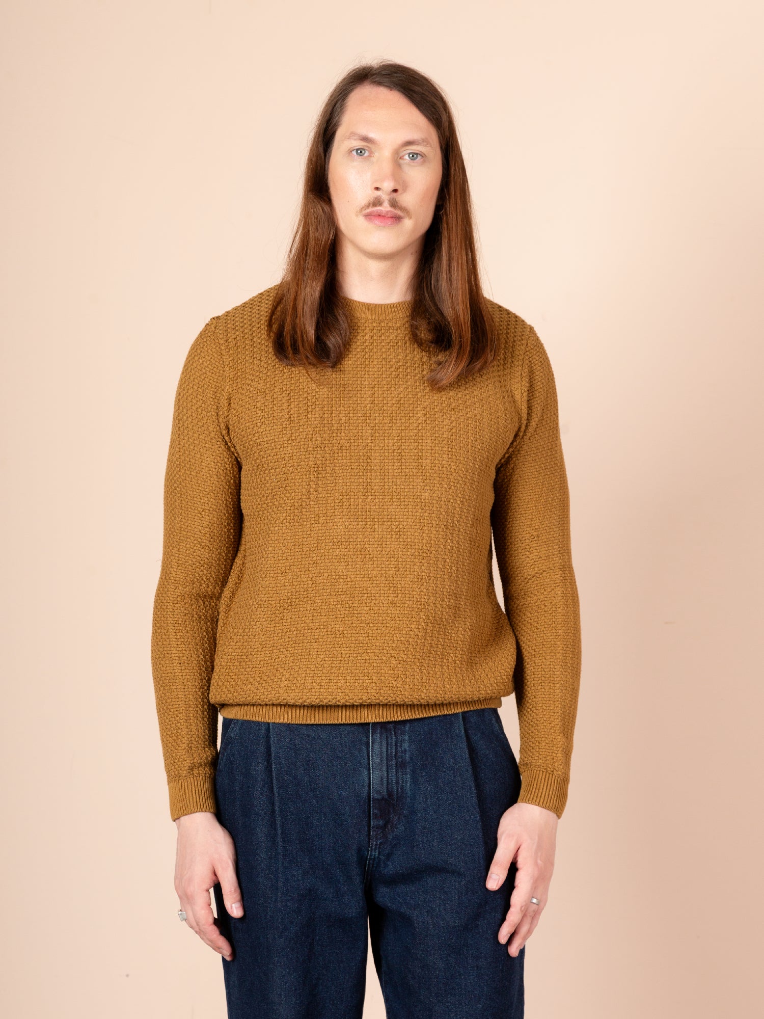 Brian Bronze Brown es un jersey unisex de punto medio confeccionado en España con 100% algodón. Su fit regular y textura suave lo convierten en un básico versátil, perfecto para el entretiempo y los días fríos. El tono bronce cálido añade carácter sin perder la sencillez del diseño.
