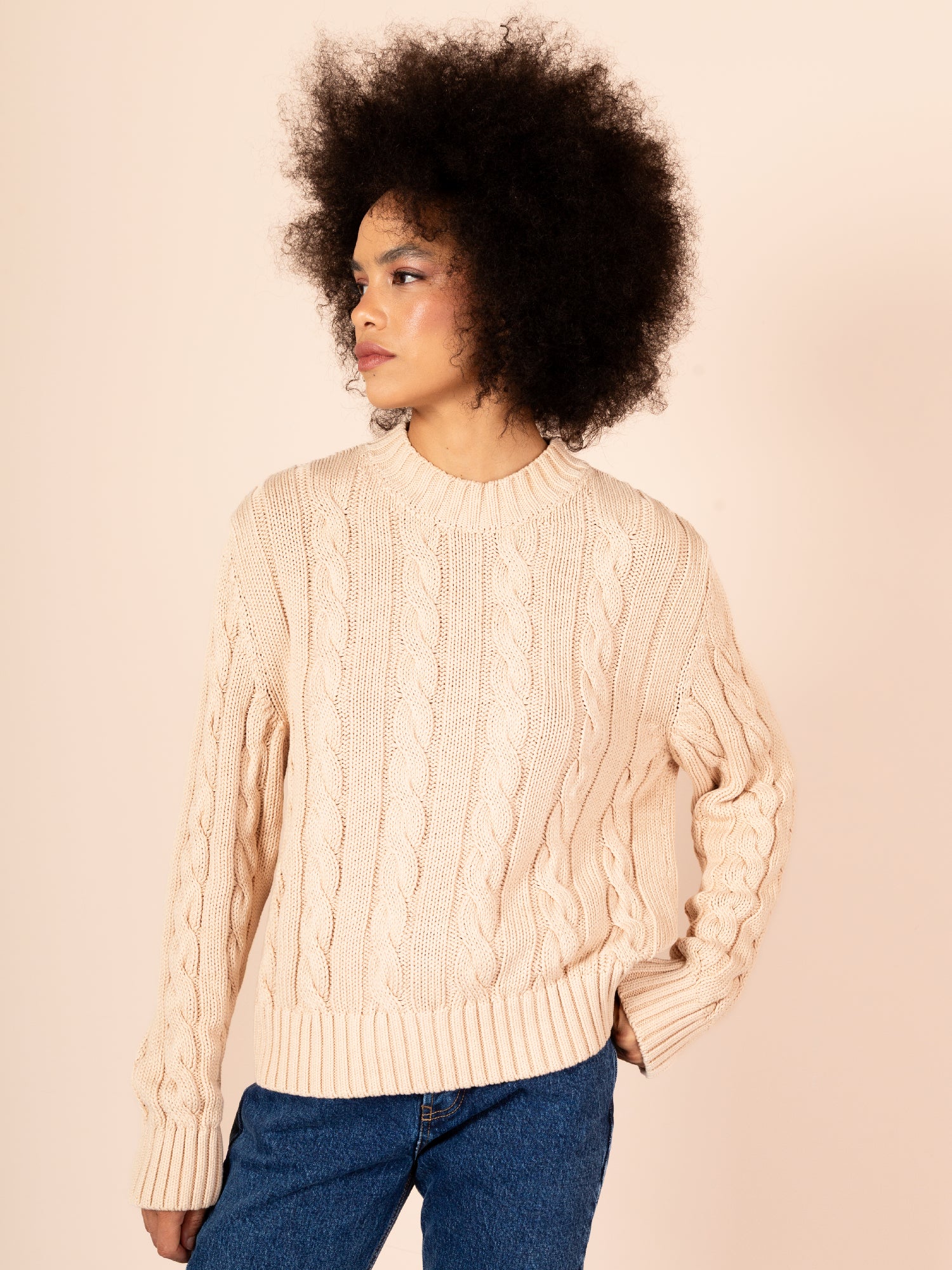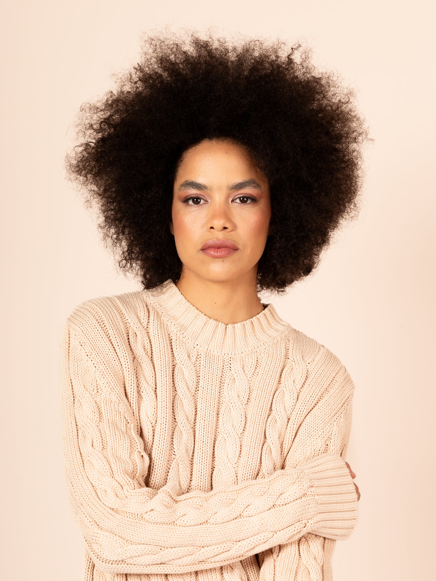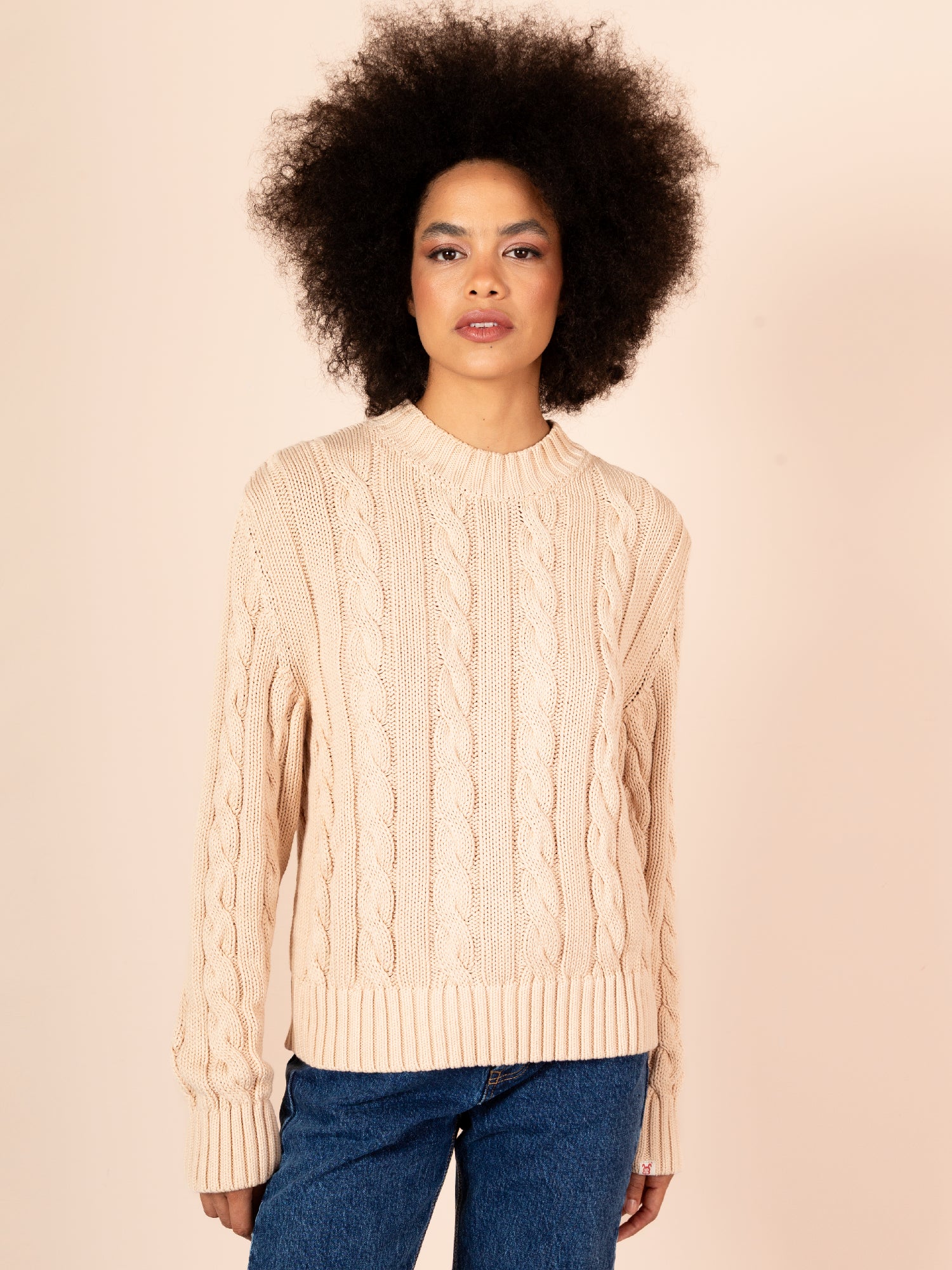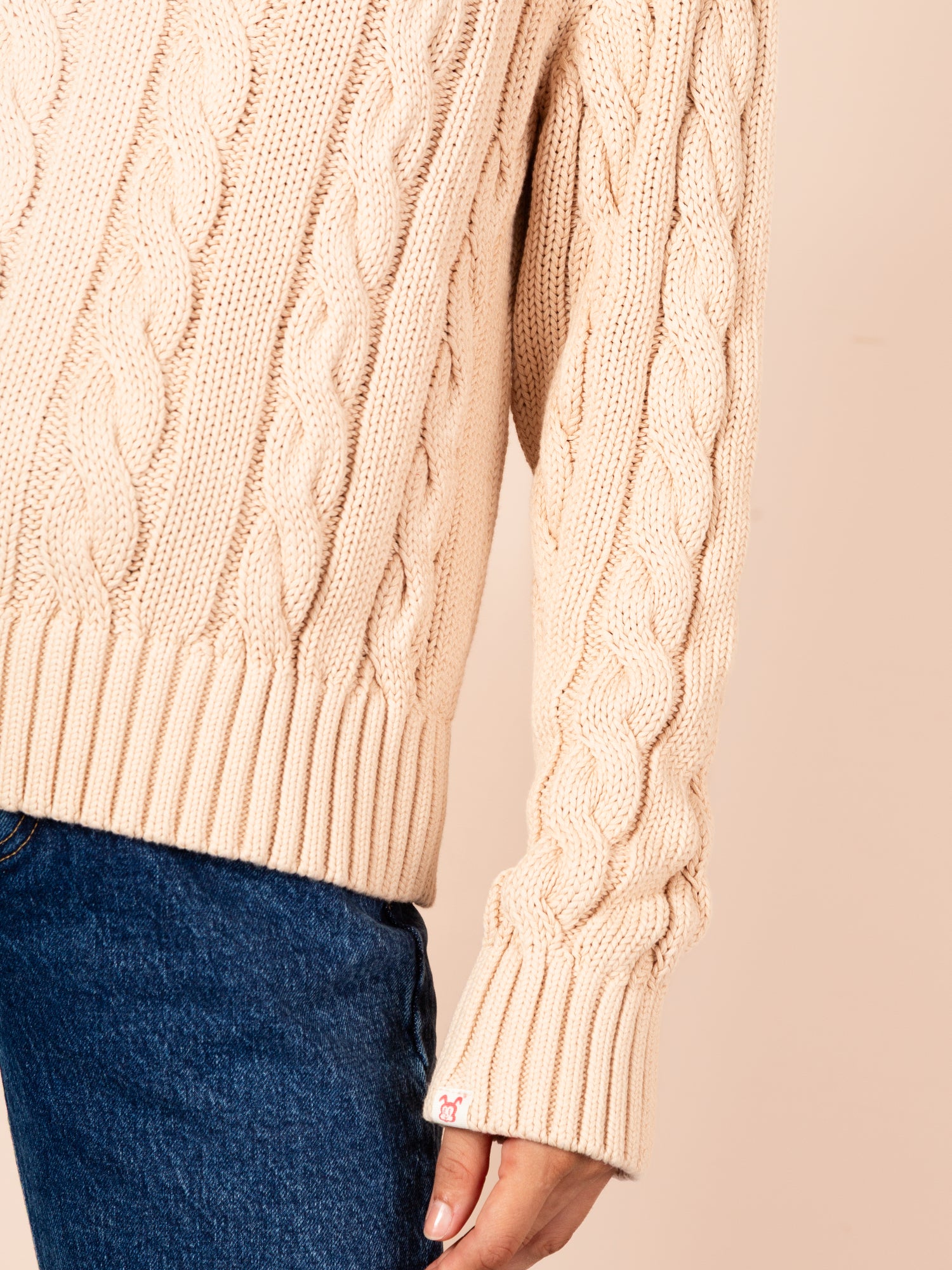 MacGowan Beige es un jersey de punto grueso trenzado, confeccionado en España con 100% algodón. Su diseño clásico con ochos y su fit regular lo convierten en una prenda atemporal, cómoda y muy fácil de combinar. Su tono beige claro aporta suavidad y calidez, ideal para cualquier look de invierno.