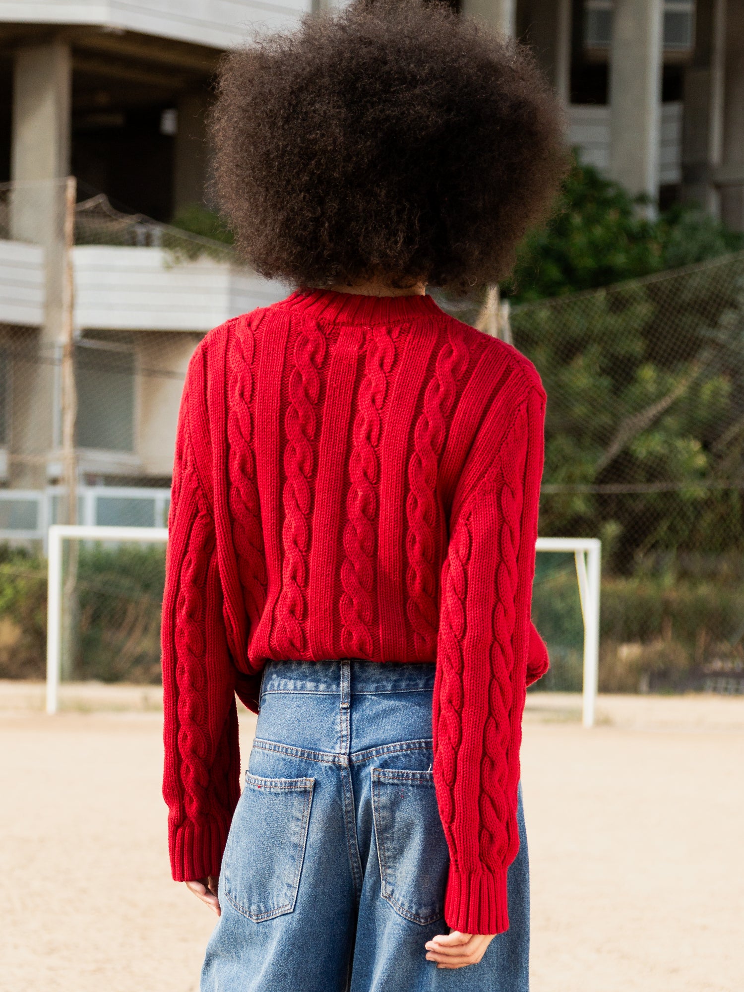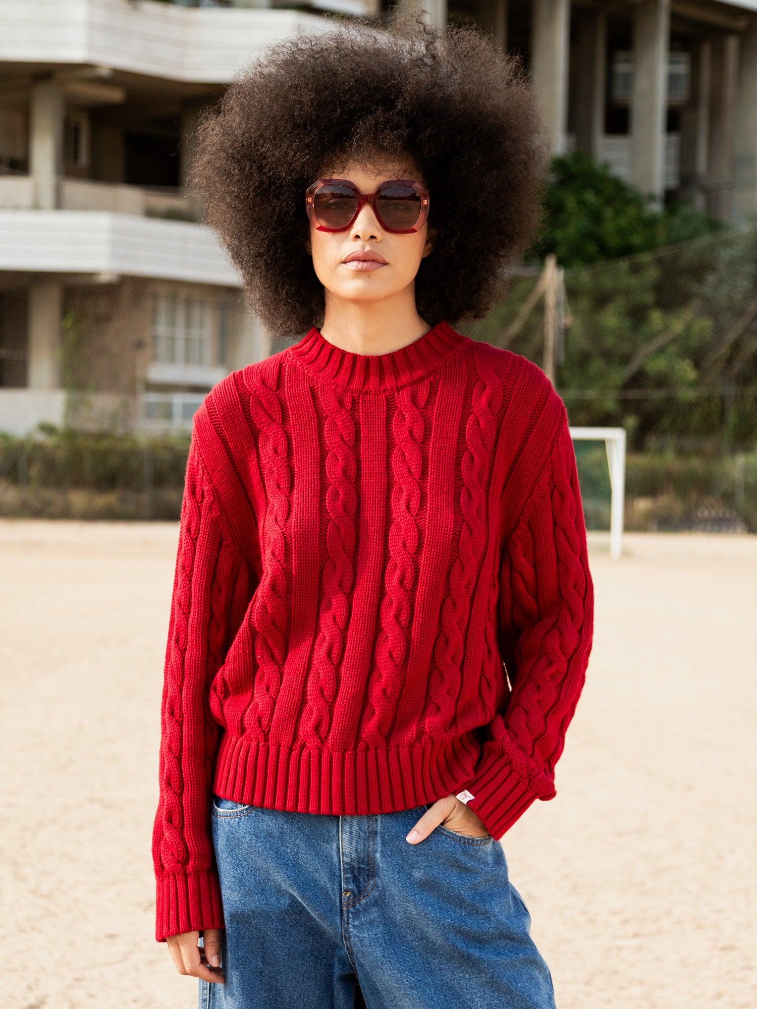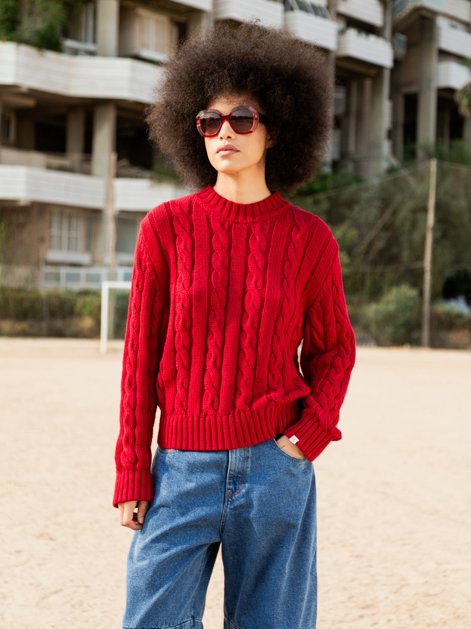 MacGowan Red es un jersey de punto grueso trenzado confeccionado con 100% algodón. Su fit regular y textura cálida lo convierten en una prenda cómoda, duradera y con carácter. El color rojo aporta energía y un toque vintage que combina con denim o prendas neutras.