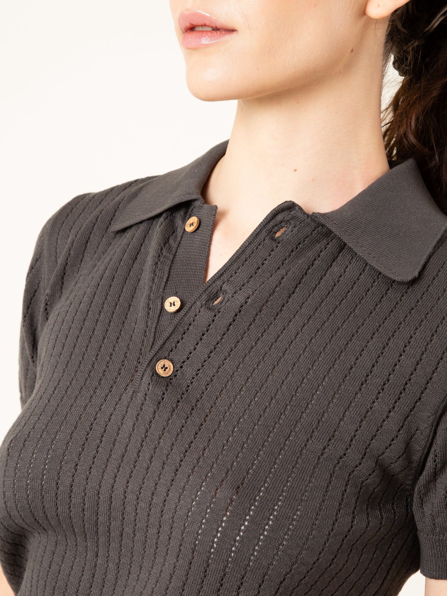 El Polo Florinda Gris para mujer es la opción perfecta si buscas un look relajado y con personalidad. Su diseño retro y su tejido de punto 100 % algodón lo hacen fresco, suave y muy agradable al tacto. Cada pieza se confecciona de forma individual en Campillo de Altobuey (Cuenca), lo que requiere más trabajo que un polo convencional, pero garantiza un acabado auténtico. Diseñado y fabricado en España con unidades limitadas.