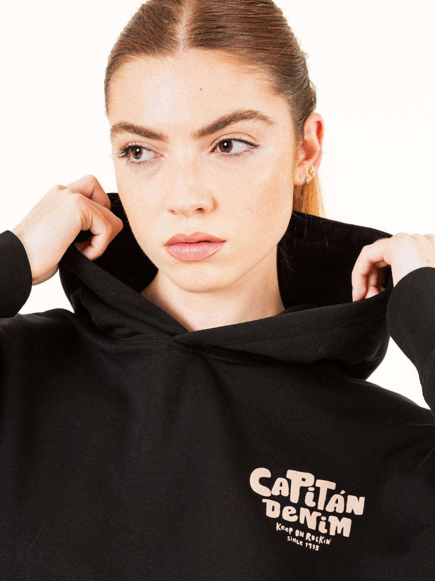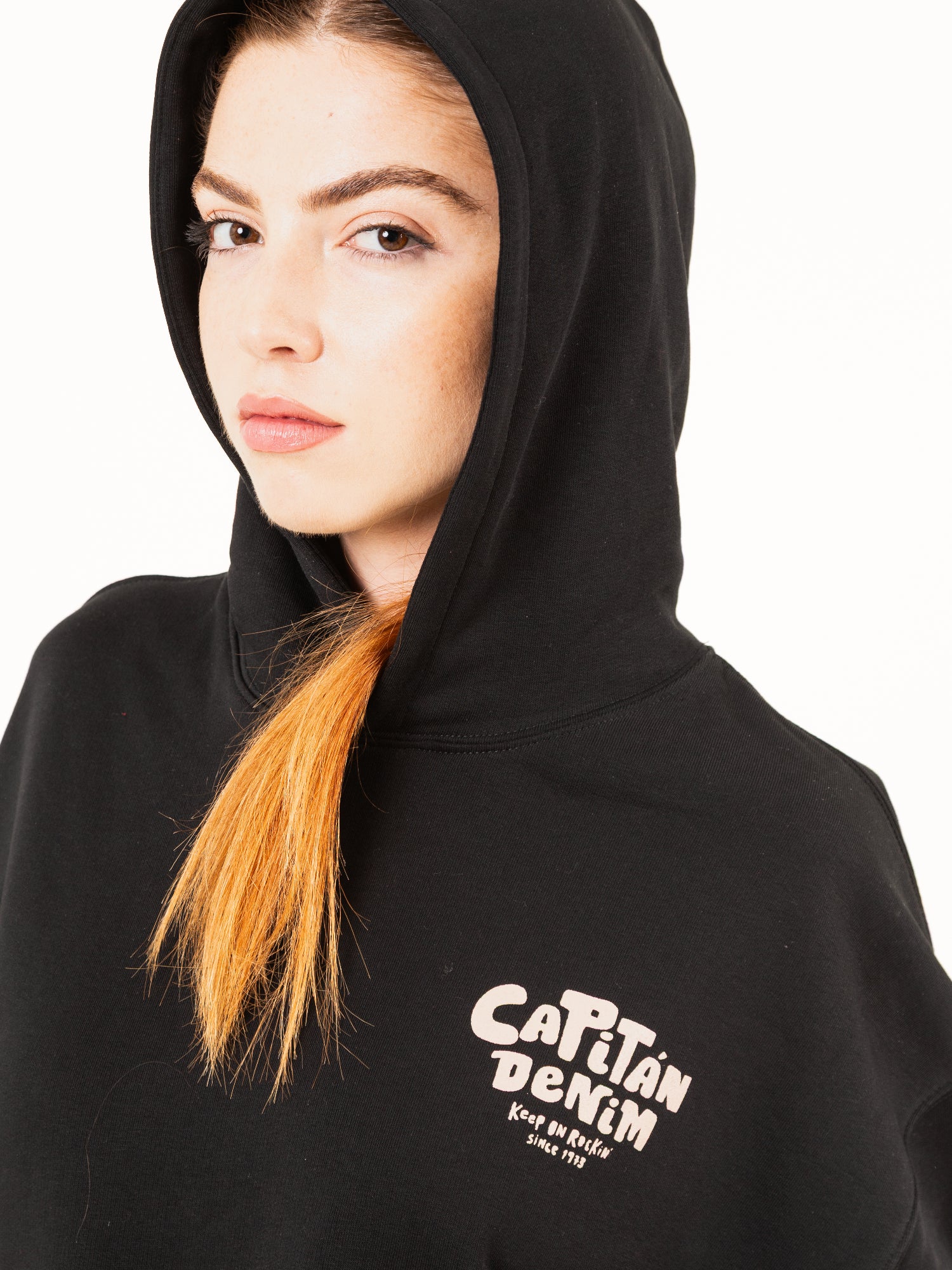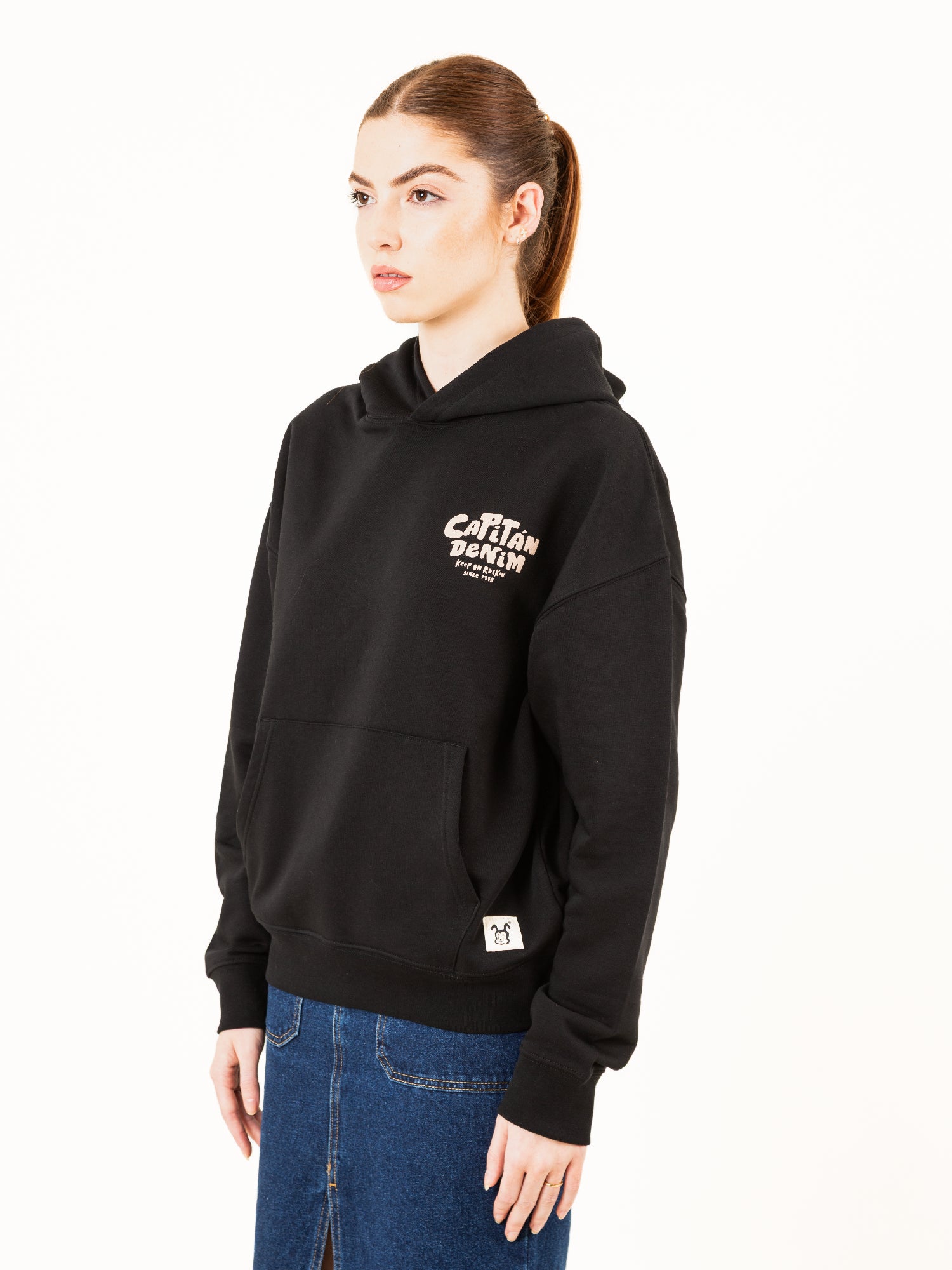 SUDADERA HOODIE BLACK LOGO CAPITAN DENIM