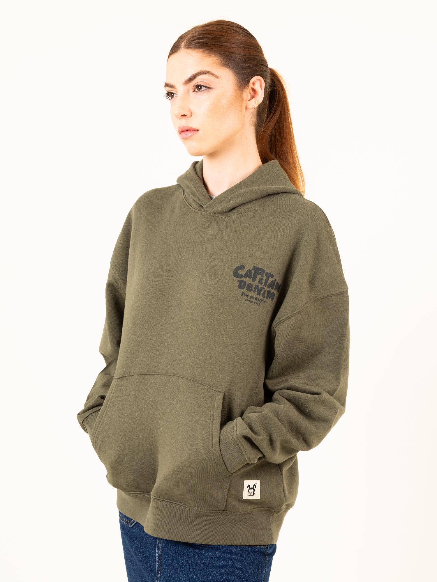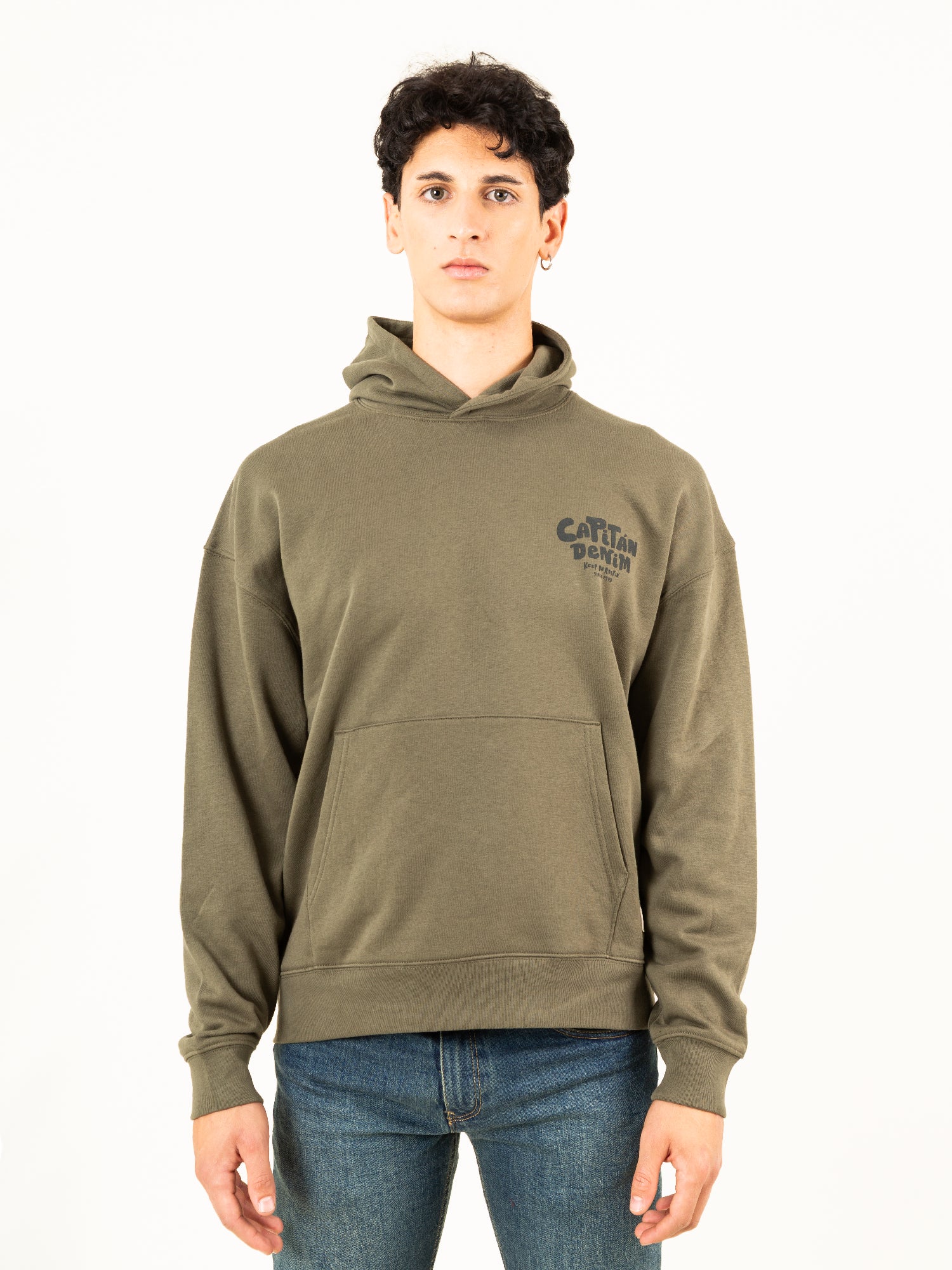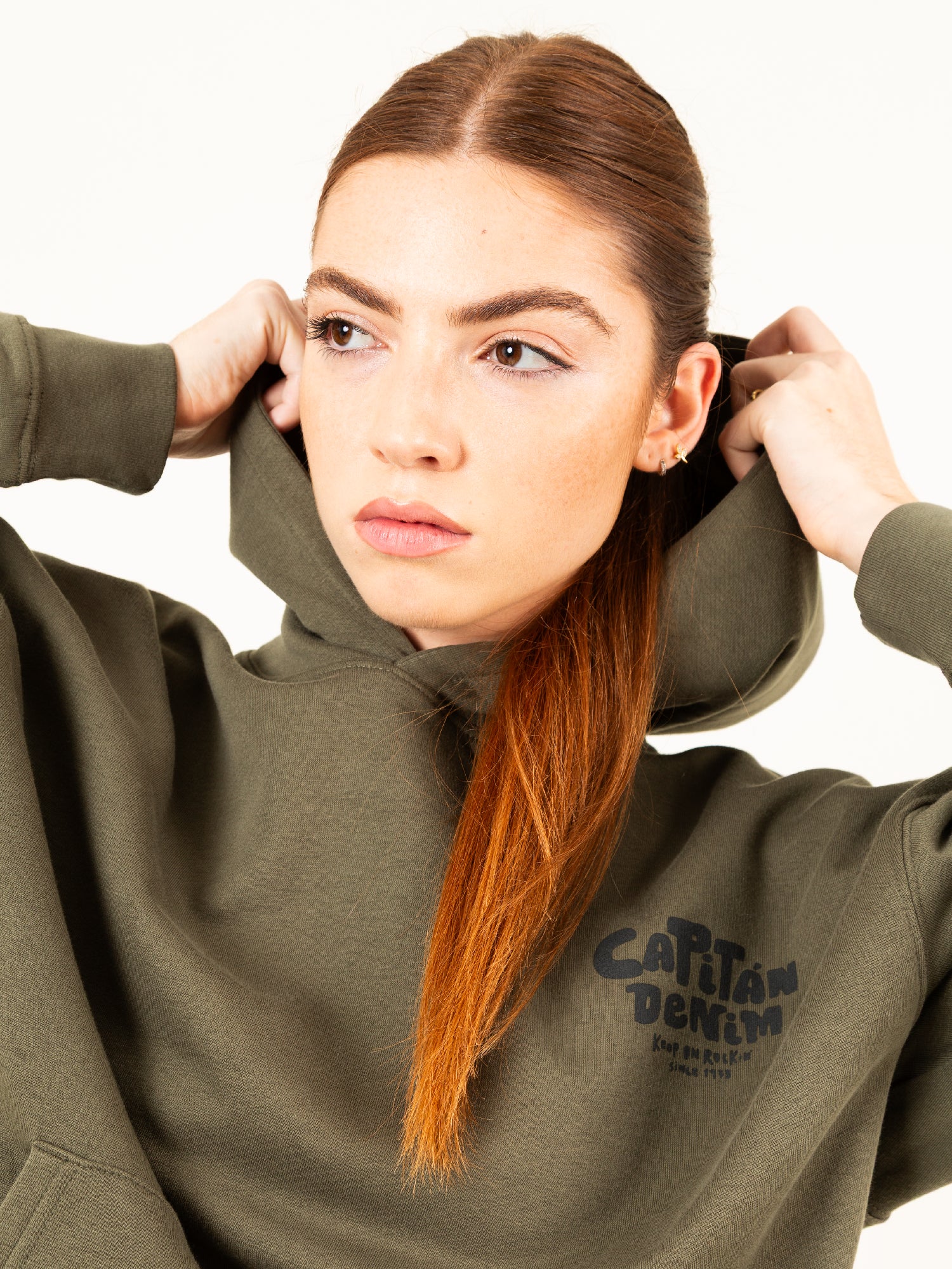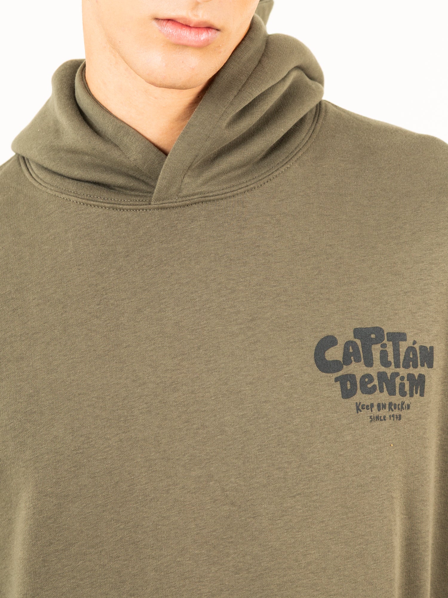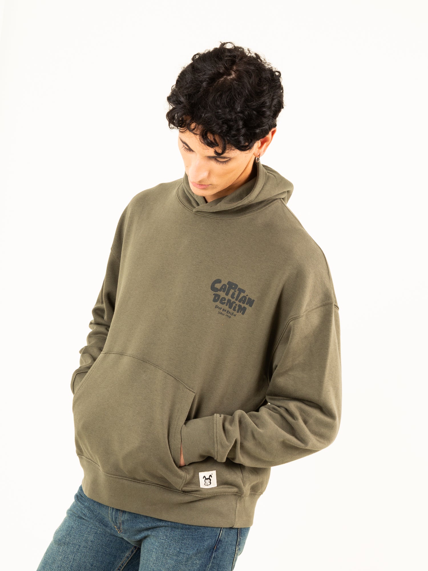 SUDADERA HOODIE KHAKI LOGO CAPITAN DENIM