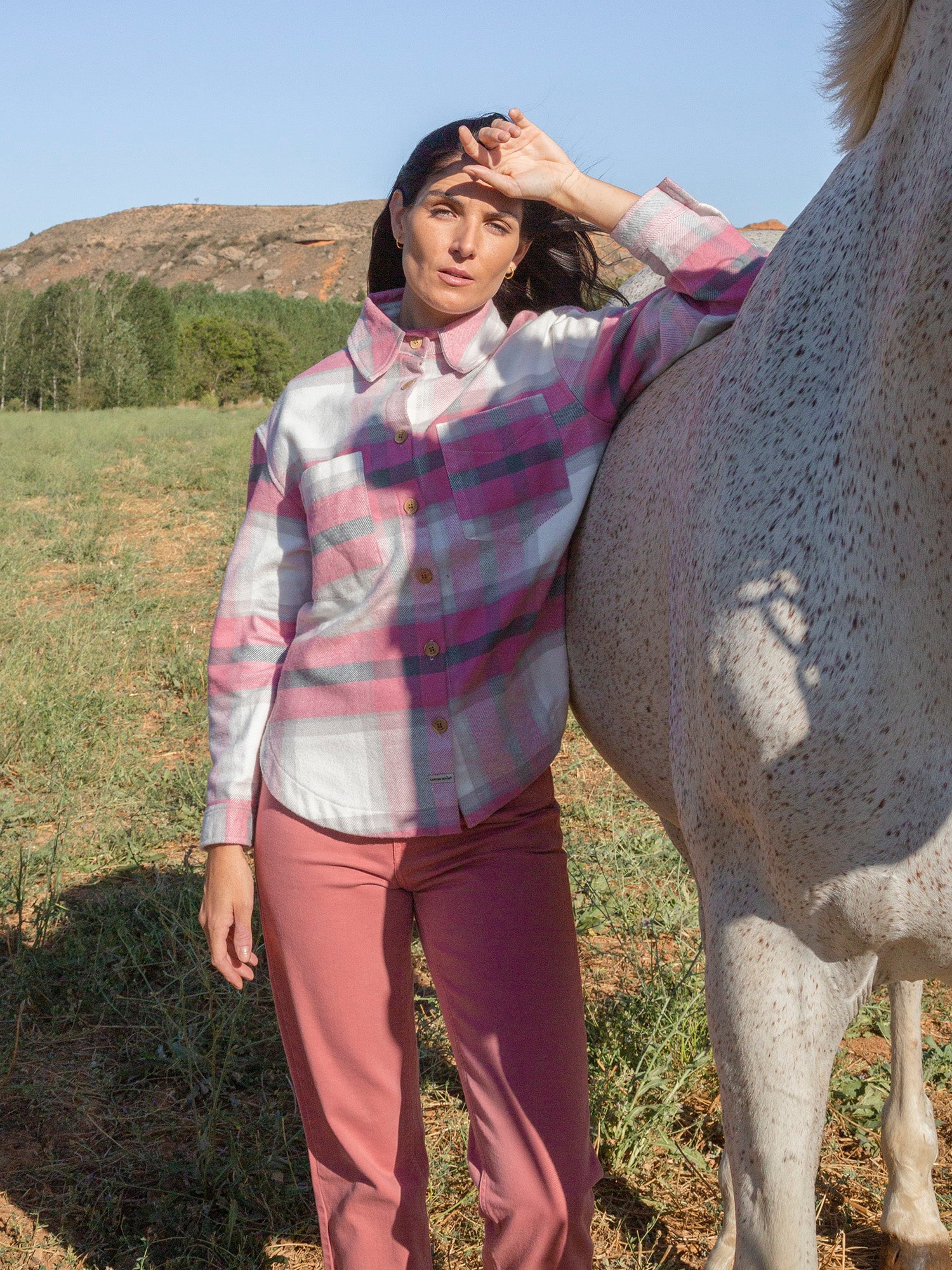 La camisa Wichita Cuadro Rosa de franela es una camisa oversize con un diseño desenfadado que también puedes usar como sobrecamisa. Está hecho en España con materiales sostenibles, la franela se ajusta con un fit recto y 100% algodón para garantizar la comodidad.