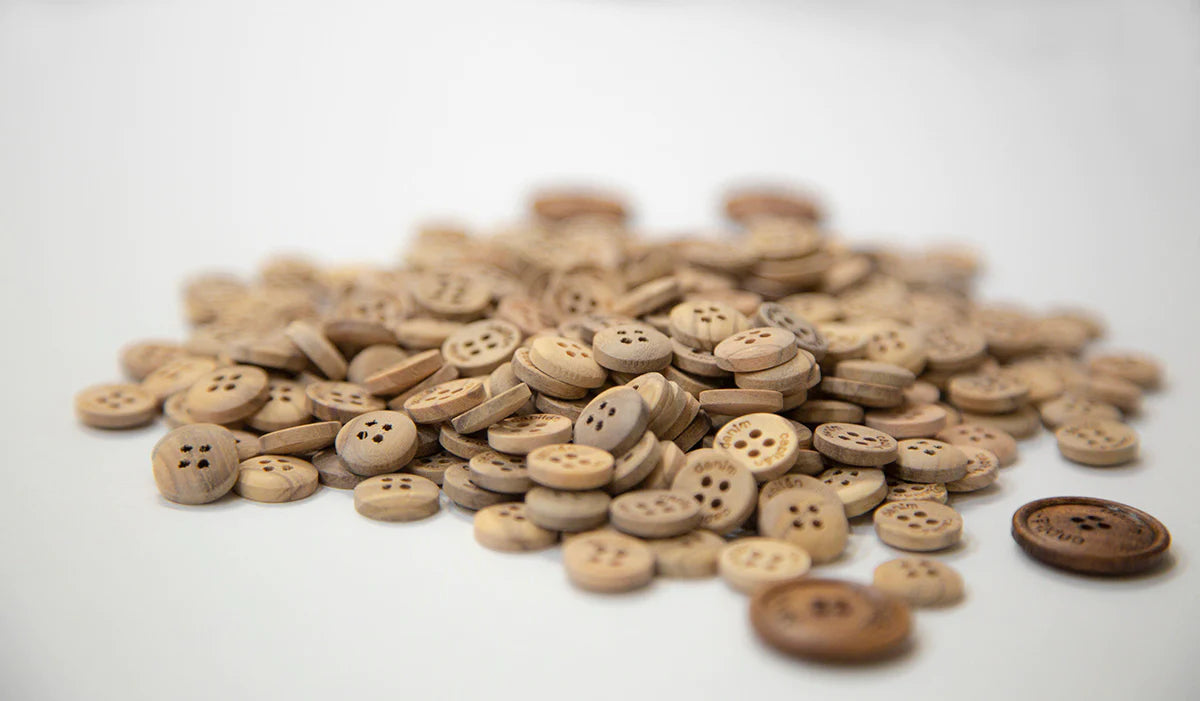 One of our objectives is to be able to manufacture garments that are 100% biodegradable, that is, from the fabric, the thread, the closure,... For this reason, we have begun to incorporate olive wood and coconut bark buttons into our garments.
