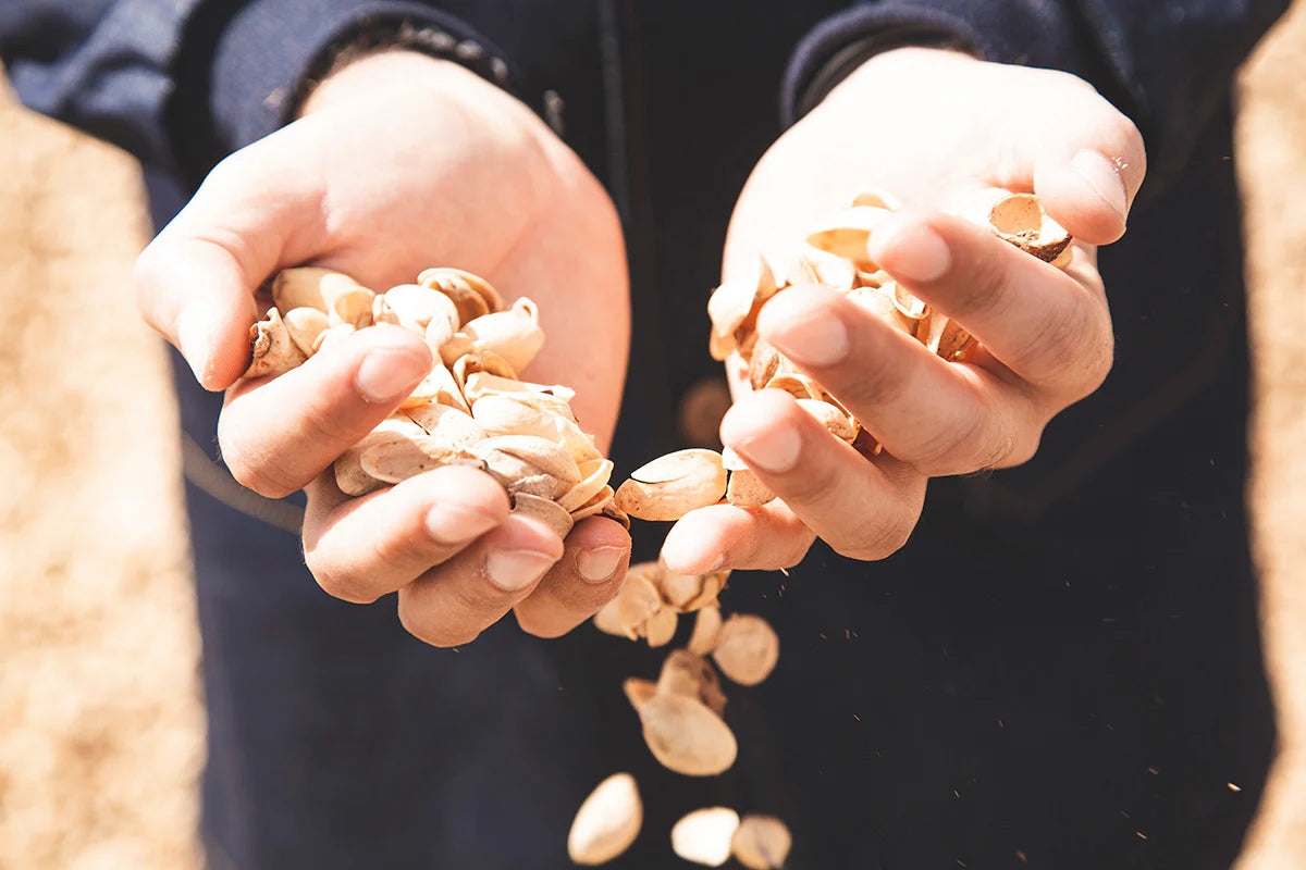 Dependiendo de la época del año o de la temporada, utilizamos diferentes excedentes de frutos: huesos de aceituna, cáscara de pistacho, de almendra o hueso de melocotón, entre otros, como combustible para nuestras máquinas. Como trabajamos en un entorno rural donde la agricultura tiene un peso importante, todo nuestro suministro de residuo orgánico es de proximidad, por lo que reducimos las emisiones en el transporte del mismo.