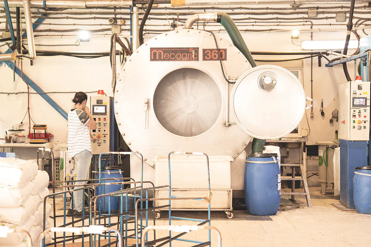 Este proceso necesita menos de la mitad de agua, concretamente puede trabajar con un 54% menos de agua y conseguir los mismos resultados que si se hace manera tradicional. Pero el ozono no solo tiene la ventaja de ahorrar agua en el proceso de producción, sino que requiere menos tiempo de ejecución. Con el lavado de ozono conseguimos ahorrar un 80% de tiempo y eso se traduce en una reducción de energía.